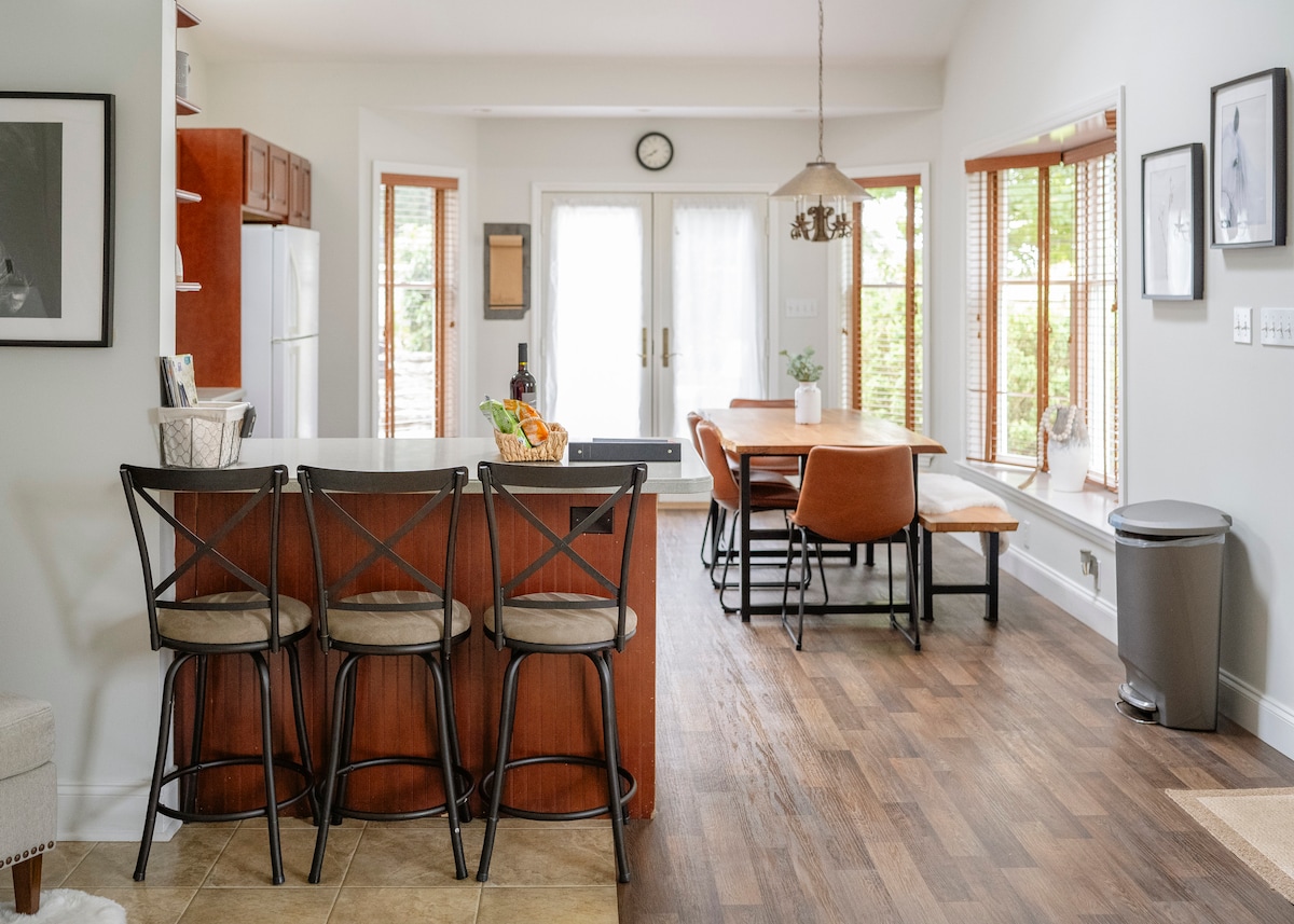В нашем уютном коттедже с тремя спальнями и двумя ванными комнатами на берегу реки с комфортом могут разместиться 6-8 взрослых, есть трехсторонний камин, полностью укомплектованная кухня и несколько зон отдыха как внутри, так и снаружи. Скандинавский, деревенский/современный декор с подвесной веревочной кроватью. Открытый павильон и просторный задний двор в тихом районе делают это место идеальным местом для отдыха! *5 минут до центра Ланкастера. *5 минут до поместья Ривердейл. *10 минут до Голландской страны чудес. *15 минут до кинотеатра Sight & Sound. *40 минут до парка Херши.