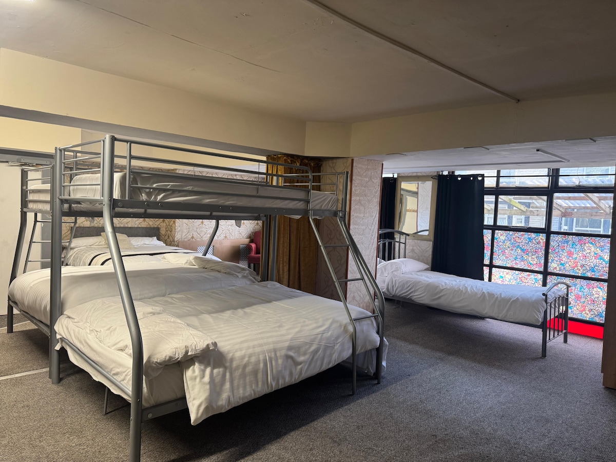 Вы будете очарованы этим очаровательным местом для проживания, мы находимся в тихом районе Блэкпула с хорошим транспортом ко всему, что Блэкпул может предложить, мы очень близки к пляжам Север и Бисфам и главной зоне иллюминации. У нас есть общая кухня на первом этаже и вторая общая кухня на втором этаже, так что это идеальное место для отдыха с самообслуживанием. У нас есть большой общий лаундж на первом этаже и сад, где можно отдохнуть в теплые дни.