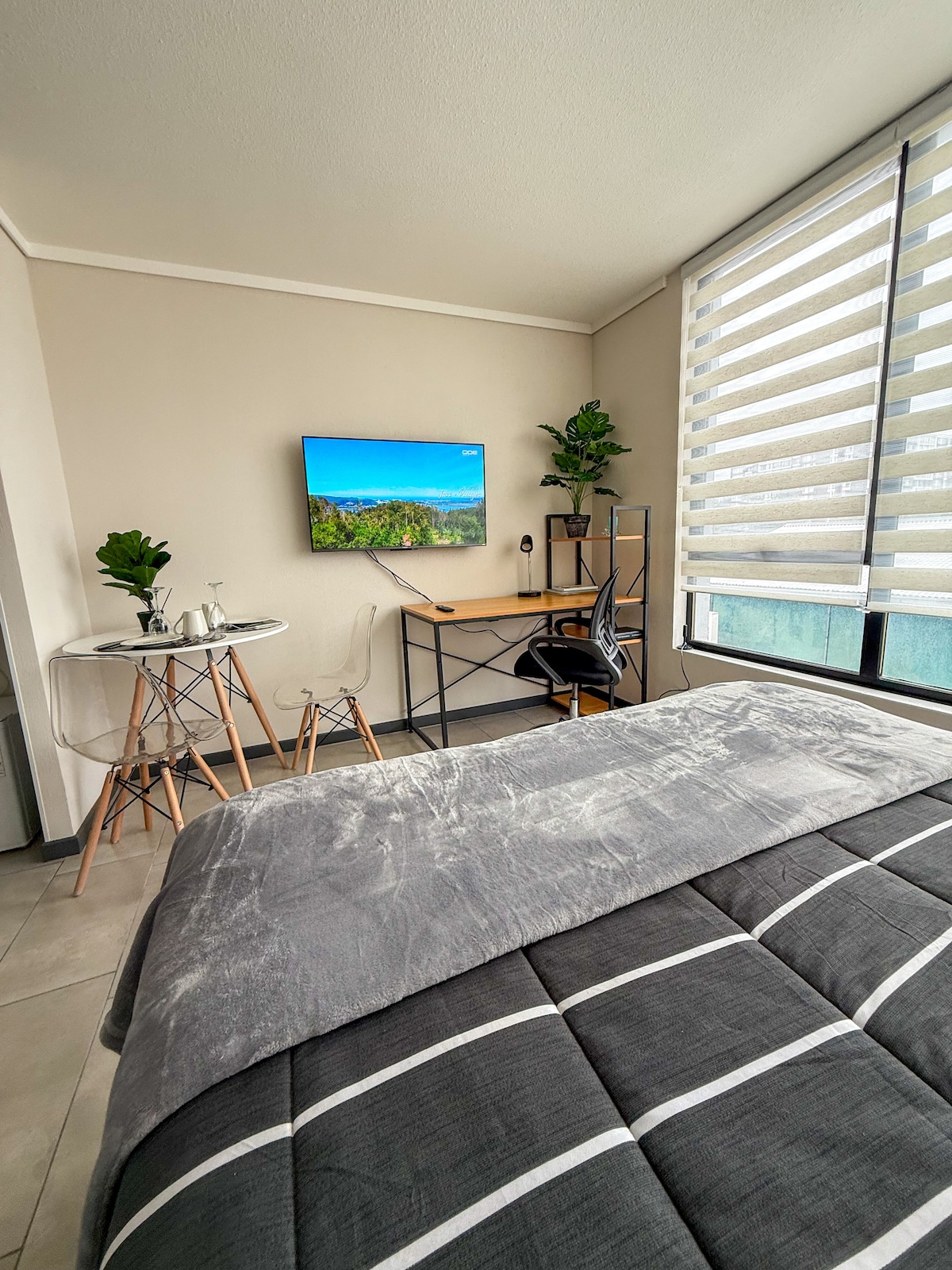 Насладитесь стильным отдыхом в центре города, в комфортабельном и полностью оборудованном жилье: - Идеально для 2 человек. — 1 двуспальная кровать размера Queen size + 1 футон. — Wi-Fi, SmartTV + 3000 каналов (включая футбол), Netflix. — Полностью оборудованная кухня. В здании есть бассейн, тренажерный зал и коворкинг. 3 минуты от терминала, стадиона, университетов, прачечной, аптек и супермаркетов. С locomoción у двери, идеальное сообщение. Круглосуточный консьерж. Идеально подходит для отдыха, работы или знакомства с городом.