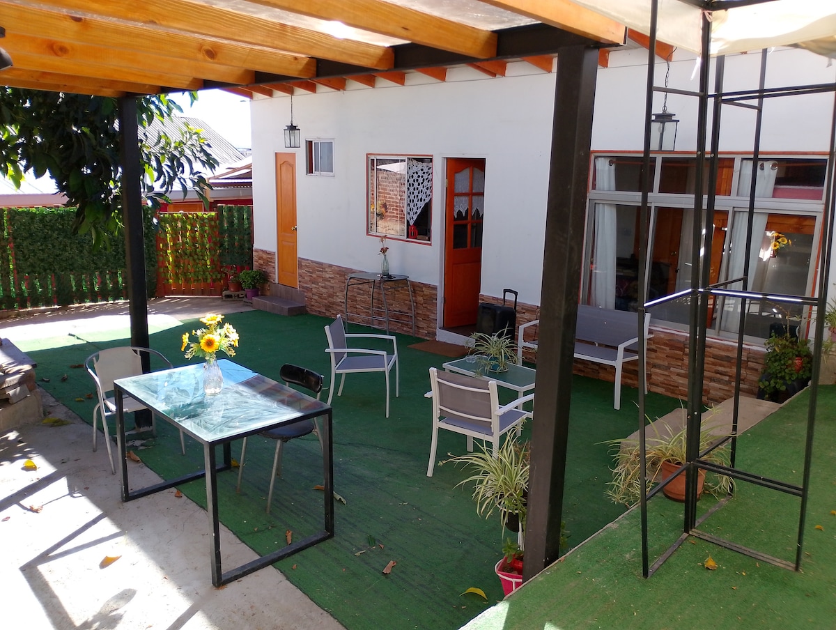 Добро пожаловать, мы сдаем квартиру, прикрепленную к дому, независимую, с небольшим внутренним патио, мини-кухней, двуспальной кроватью, собственной ванной комнатой, Wi-Fi, телевизором, Netflix, холодильником и основными услугами. Расположен в Рекрео, тихом месте с привилегированным видом, в 10 минутах от центра города Винья-дель-Мар и Вальпараисо. Рядом с пляжами и всеми достопримечательностями города. Есть парковка 4,30 x 2,50 x высота 1,79 см, а также еще одна в соседнем доме, при наличии свободных мест.
