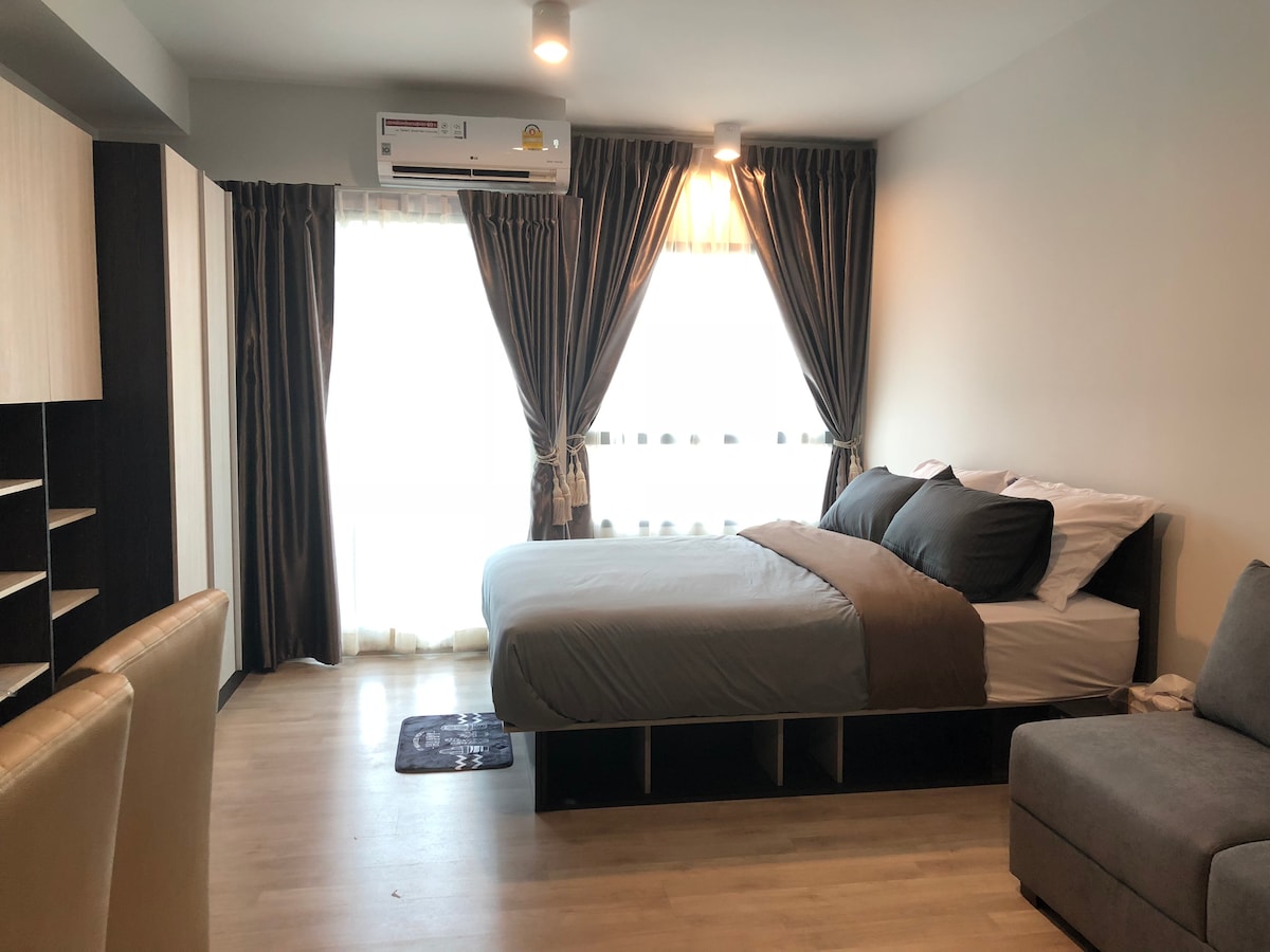 R1/Стильная уютная большая городская комната@Ratchada/Walk2Train