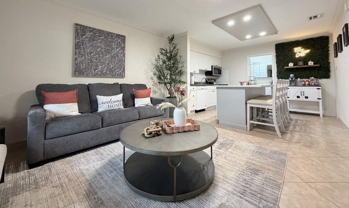 Это недавно отремонтированная современная вилла середины века в центре Пемброук-Пайнс. Эта комфортабельная студия идеально подходит для краткосрочного проживания с полноценной кухней, красиво обновленной ванной комнатой и просторной гостиной. Отдохните в удобной кровати размера Queen size и футоне, который раскладывается в двуспальную кровать. К услугам гостей бесплатный кофе, туалетные принадлежности, быстрый Wi-Fi и телевизор со Smart TV со стриминговыми приложениями. Насладитесь комфортом и стилем в этом уютном месте в оживленном районе Пемброк-Пайнс.