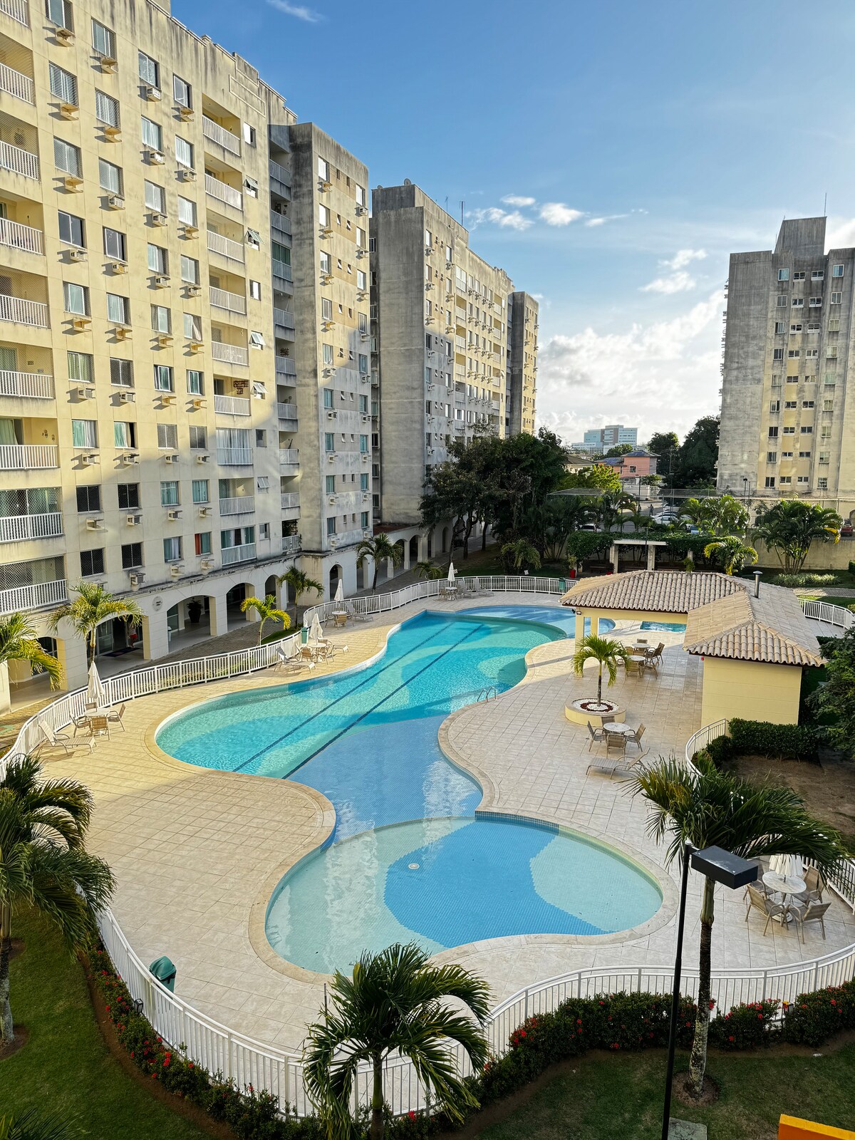Очаровательная квартира с собственным садом рядом с аэропортом! 2 спальни (1 люкс), 2 ванные комнаты, 1 парковочное место и частная зона с барбекю. Привилегированное расположение: 9 минут от аэропорта и рядом с магазинами, больницей, рынком и аптекой. В кондоминиуме есть бассейн, тренажерный зал, зона для барбекю, игровая комната и супермаркет для большего удобства. Идеально подходит для путешественников, семей или профессионалов, ищущих комфорт и практичность, с круглосуточной охраной и удобствами в пределах досягаемости.