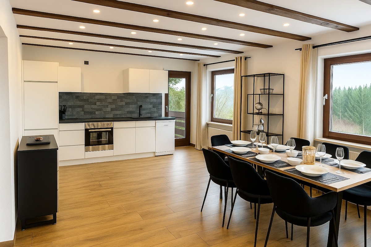 Тихая и светлая. Полностью оборудованная кухня, барбекю, костровище и фитнес-зона с боксерской грушей, доской для дротиков и столом для настольного тенниса. Мероприятия для всей семьи: пешие прогулки, велоспорт, катание на лыжах, Ravensburger Spieleland, экскурсии на пивоварню, фестиваль Ikarus, центр для посетителей Рапунцель, термальные ванны и озера для купания. Идеальная отправная точка для Нойшванштайна, Альп, Мюнхена, Боденского озера. Крытые парковочные места (навес). Доступно на поезде (станция Айхштеттен)