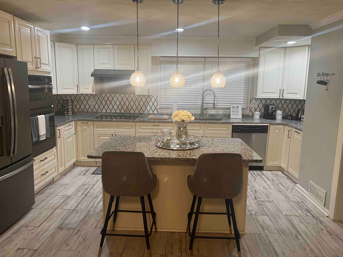Отдохните в этом частном, полностью отремонтированном доме с 3 спальнями на участке в один акр! Этот стильный дом идеально подходит для 6 гостей. К услугам гостей две гостиные, современная кухня шеф-повара и отдельный офис с двумя мониторами. Наслаждайтесь полной уединенностью, большим патио и просторным местом для отдыха. К услугам гостей мастер-люкс с кроватью размера King size, две спальни с кроватями размера Queen size, высокоскоростной Интернет и гараж на две машины. Идеально подходит для семей, групп или удаленной работы.