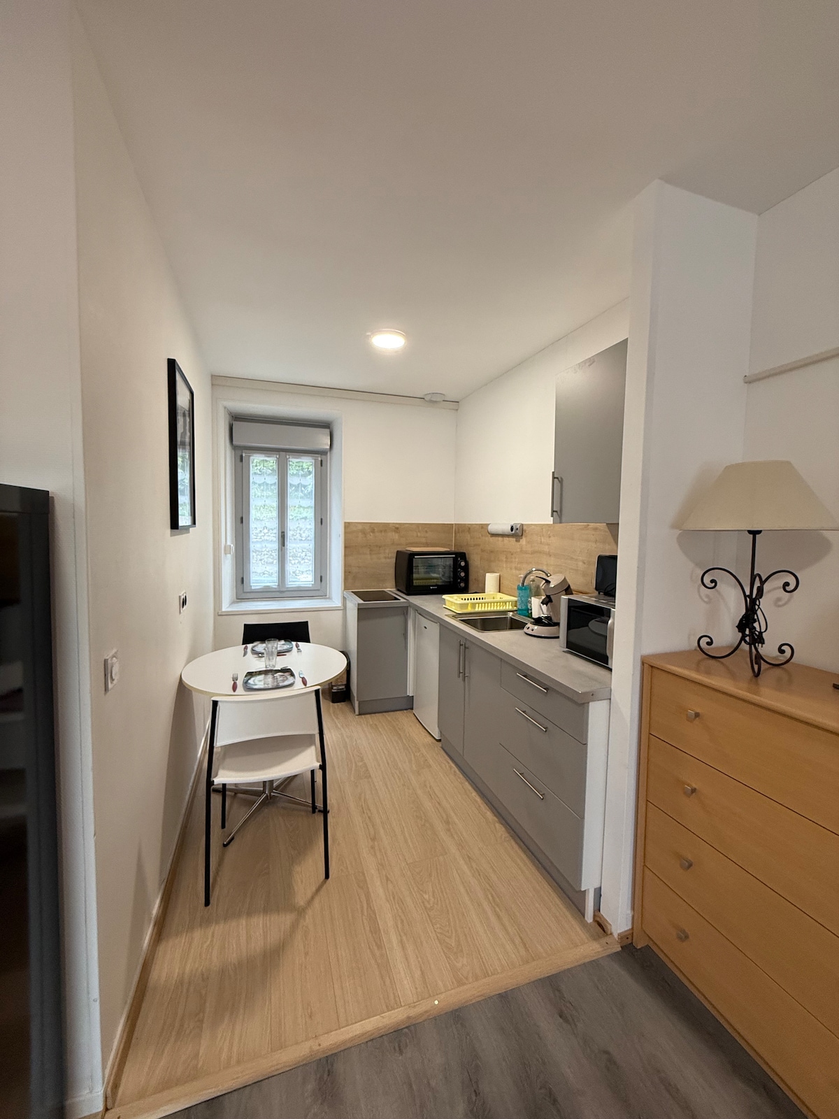 Жилье на первом этаже таунхауса в 5 минутах от всех магазинов для велосипедистов. (Доступ по наружной лестнице). Парковка напротив жилья, чтобы припарковать свой автомобиль. Кухня оснащена микроволновой печью, микроволновой печью, духовкой, духовкой, холодильником, кофеваркой, керамической варочной панелью. Вы также найдете спальню с кроватью 140 и гостиную с односпальной кроватью. - 10 минут до центра города на велосипеде. - общественная парковка перед квартирой или 1 минута до другой общественной парковки - одежда наверху.