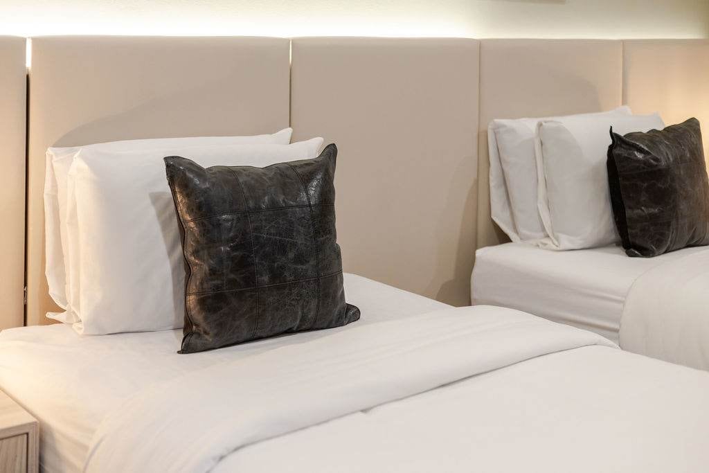 This elegant hotel room blends style and comfort, featuring two plush single beds with premium linens—ideal for friends or solo travelers sharing a space. Located in one of Montreal’s most vibrant neighborhoods, you’re steps from cafés, bars, and cultural gems. Guests also enjoy access to a welcoming lobby lounge and a spacious basement with cozy seating, a pool table, and big-screen TV—perfect for work or relaxation.