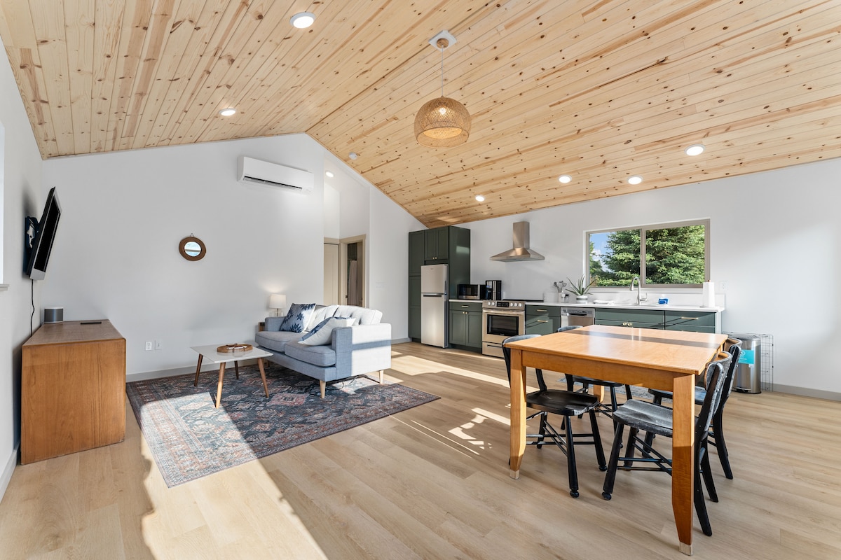 Максимум 2 взрослых, 2 детей. Чистая, стильная квартира с одной спальней на верхнем этаже в отдельно стоящем дополнительном жилье идеально подходит для отдыха пар, семейного отдыха или базы для приключений. Всего в двух кварталах от деревенских магазинов, ресторанов, кофеен и праздничных огней — автомобиль не нужен! Прогуляйтесь до парка Riverfront Park с тропами, местами для пикников и детской площадкой. К услугам гостей кровать размера «king-size» и удобный диван-кровать размера «queen-size» для спокойного ночлега в тихом очаровательном месте. *владельцы живут на территории *Дополнительные взрослые оплачиваются 50 долларов США за взрослого в день после предварительного одобрения.