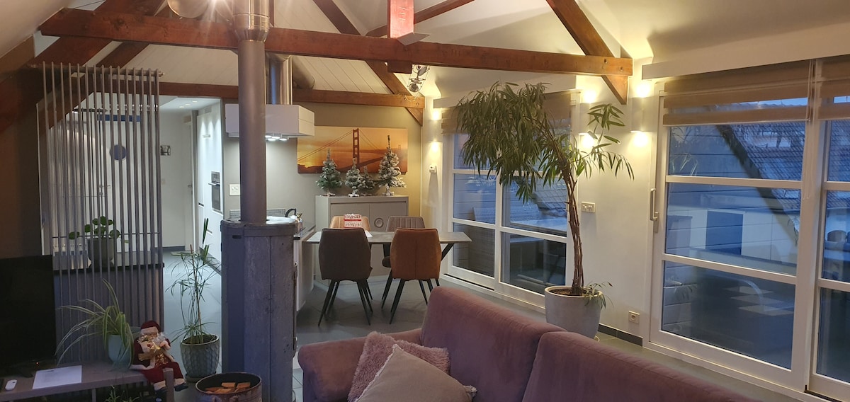 Мы предлагаем хороший лофт с одной двуспальной кроватью и комнату с двумя односпальными кроватями. В лофте есть полностью оборудованная кухня, ванная комната с душем, раковиной и унитазом. У вас есть собственное парковочное место, собственный вход и небольшой частный сад. При желании вы можете купить свежие яйца от наших собственных цыплят.