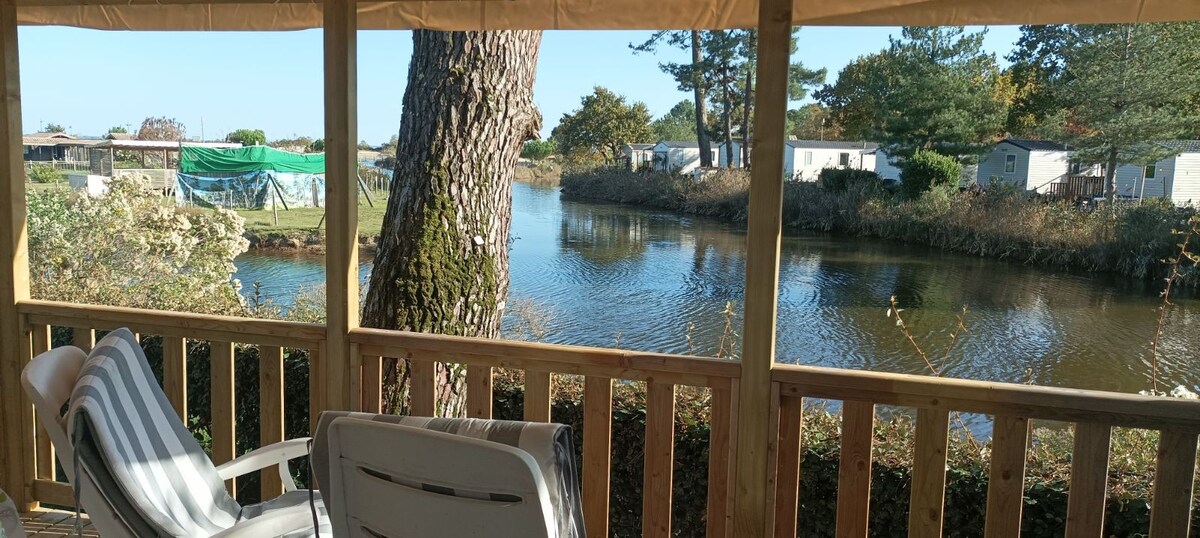 🏖️Расположена на полуострове Кап-Феррет в кемпинге Les Viviers с видом на залив Аркашон. Полностью оборудованный🏡 мобильный дом вмещает 6 человек, расположенный менее чем в минуте ходьбы от бассейна, спа-салона, бара, снэк-бара, ресторана, игр и детских клубов, спортивных площадок, поля для мини-гольфа, стрельбы из лука, искусственный частный пляж, прокат велосипедов • серфинг • сапсерфинг • каякинг, магазин, парикмахерская, косметолог и стойка регистрации.