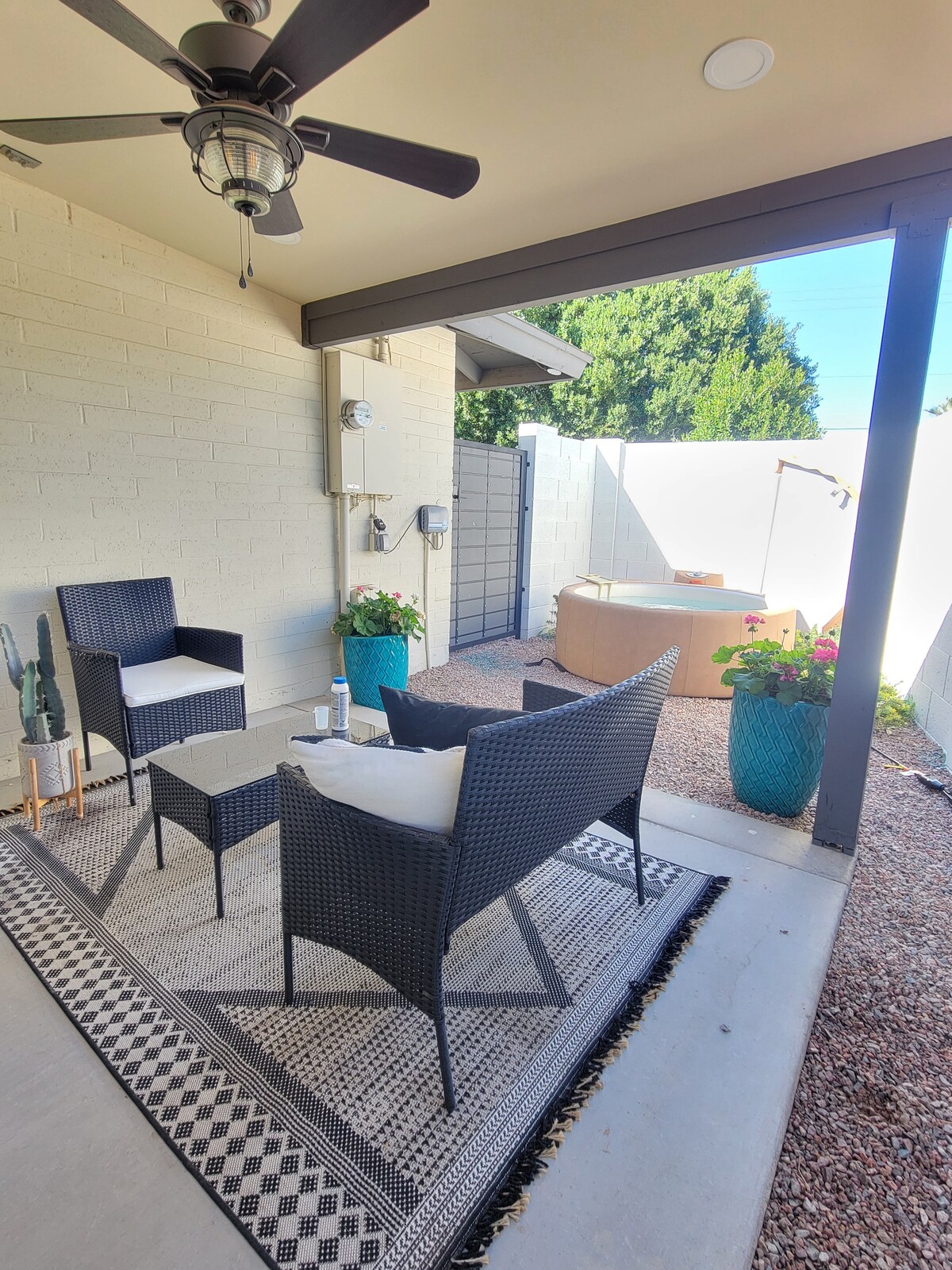 Это уникальное жилье отлично подходит для тех, кто хочет отдохнуть или поработать, исследуя центр Темпе. Главная особенность — бассейн (с подогревом) с душем на открытом воздухе. В доме 3 спальни (1 спальня с двуспальной кроватью размера King size, 1 спальня с двуспальной кроватью размера Queen size, 1 спальня с односпальной кушеткой и односпальной выдвижной кроватью, которая раскладывается на полу). Есть два стола для тех, кто хочет работать удаленно. Мы находимся в 10 минутах езды от Университета штата Аризона и Милл-авеню (центр Темпе). South Mountain < 10 минут, аэропорт Скай-Харбор <15 минут. В доме не более 6 гостей.