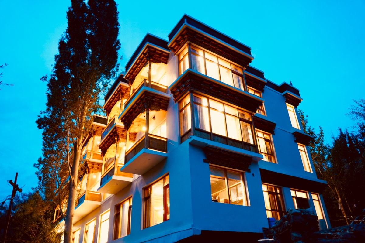 Where comfort meets elegance – 16 fully furnished, centrally heated rooms with private balconies & kitchens for long stays. Enjoy breathtaking views of Stok Kangri & Shanti Stupa, 24x7 reception, in-house dining, a cafe & bakery, and floor-heated bathrooms for ultimate luxury. Keyless entry, secure parking, and special rates for extended stays make your experience seamless.