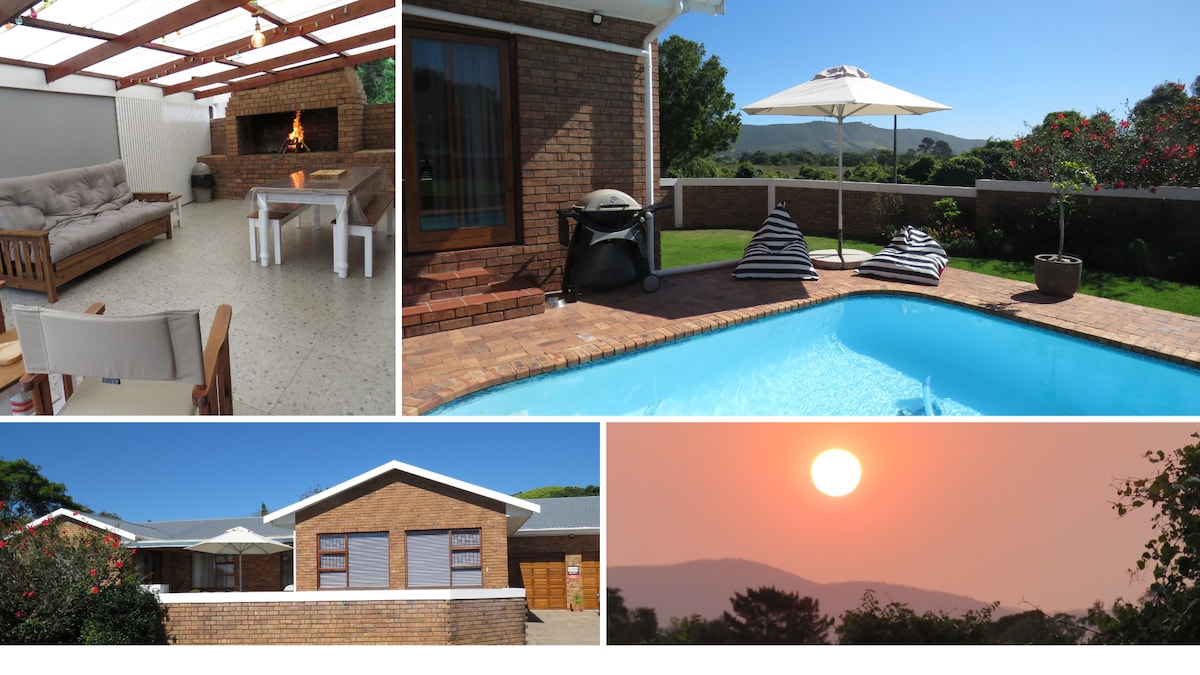 180-градусный вид (Solar for Power Security) потрясающей лагуны Knysna в тихом районе. Верхняя отделка в новом доме! Прекрасный сад и бассейн. Солнечная терраса, где можно насладиться видами и камином, чтобы добавить атмосферу и тепло в прохладные вечера. Так близко к городу, но в тихом и уединенном районе. Браай/барбекю для приготовления пищи на открытом воздухе и обеда во многие красивые вечера. Отзывы всех гостей говорят об этом, и 75% гостей являются взыскательными иностранными путешественниками.