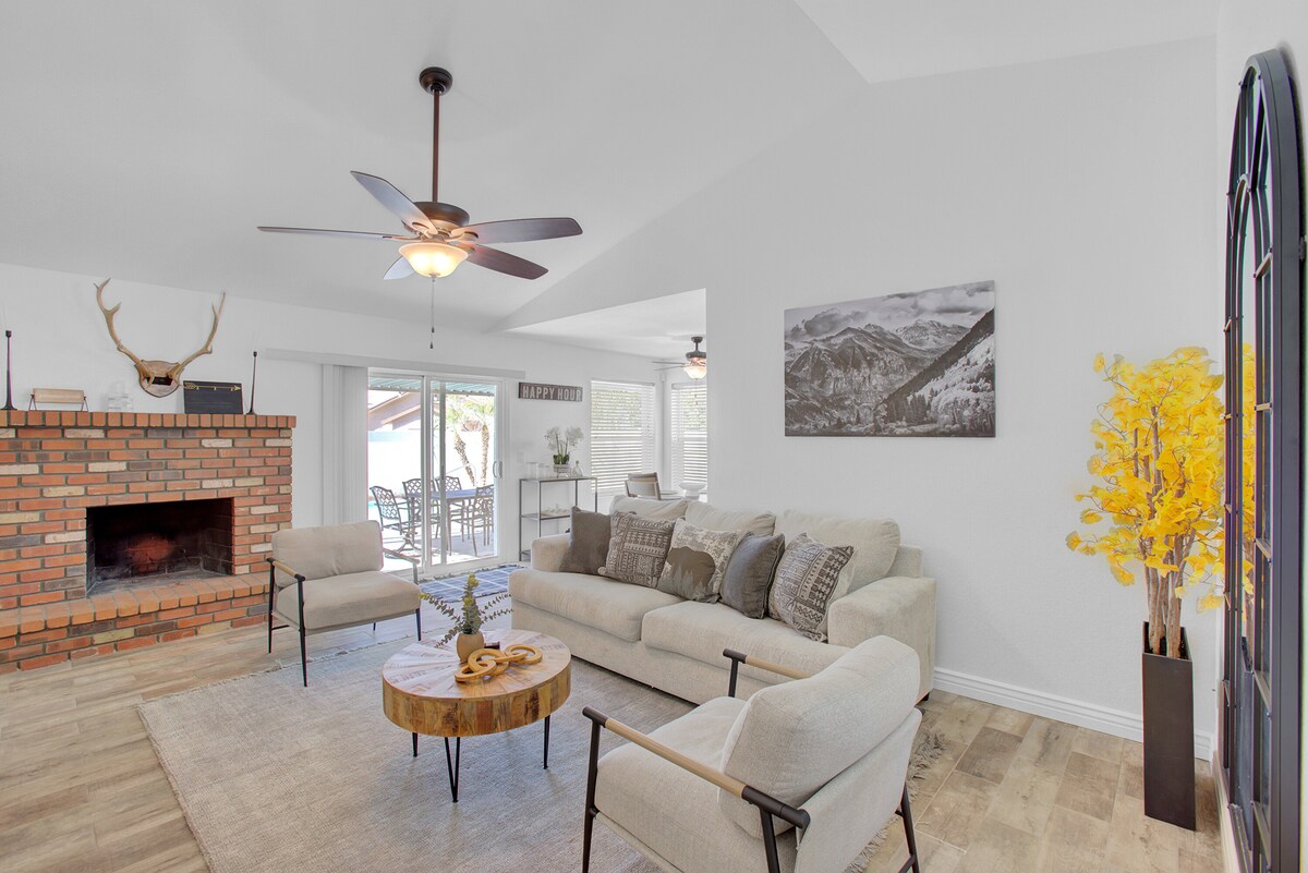 Откройте для себя идеальное жилье в Месе в этом уютном доме с 3 спальнями и 2 ванными комнатами, расположенном в тихом и удобном районе. Этот уютный дом станет идеальной основой для незабываемого отдыха в Аризоне. Отдохните у частного бассейна, согрейтесь у камина или поработайте в специально отведенном месте. 7 спальных мест с 3 удобными кроватями. Идеально подходит для семей или удаленных работников! Ваше приключение в Аризоне начинается здесь!