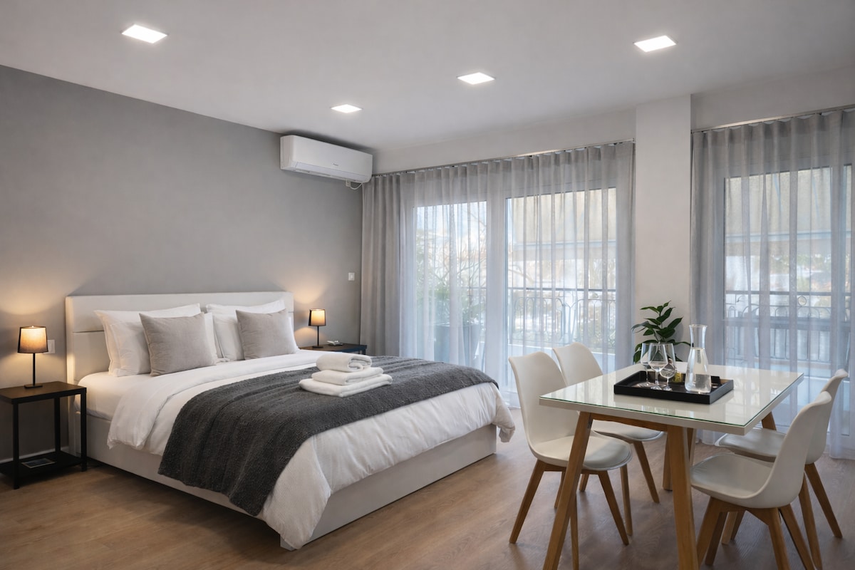 Spacious Studio with large balcony close to the Airport & Pallini Metro & Suburban Railway (Proastiakos) Station Ideal accomondation for travelers, professionals, or anyone who needs easy access to the airport. It is located in a quiet and safe neighborhood, just a short distance from Pallini Metro and Proastiakos Station, offering quick connections to the center of Athens, the Mesogeia area, and Athens International Airport “Eleftherios Venizelos.”