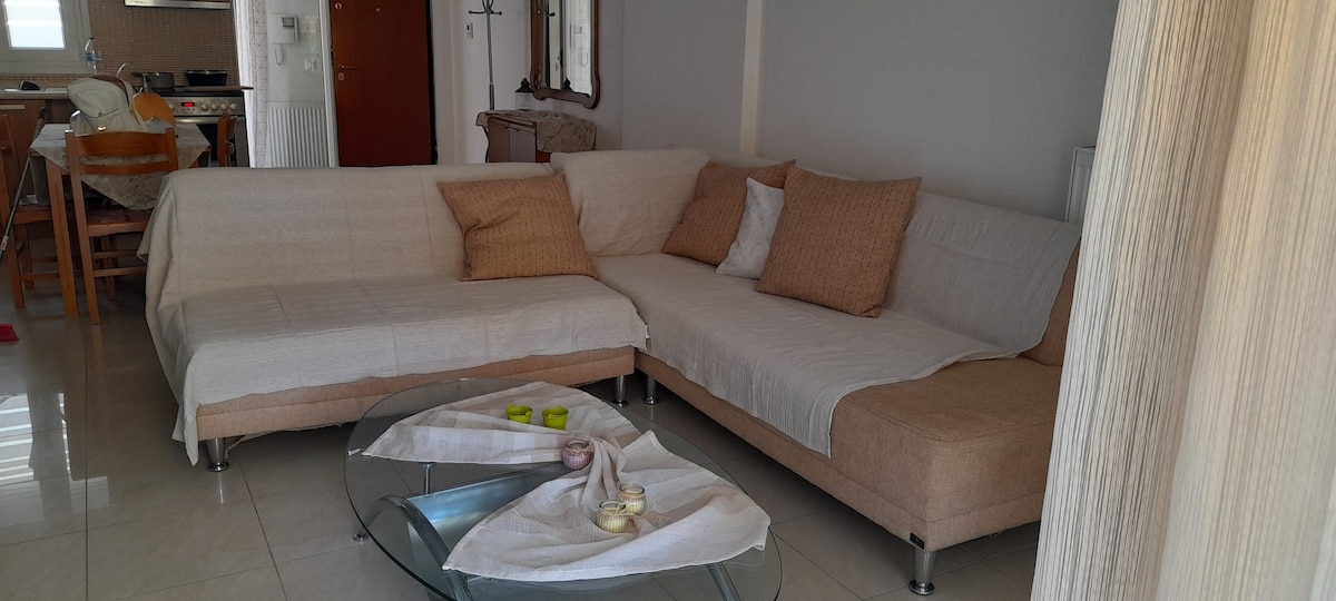 Welcome to our beautiful home,perfectly situated in the heart of Ancient Pydna. This two bedroom, one kitchen one bathroom, big balcony with Seaview,private parking,private road to beach,house offers a blend of modern comforts and charm ideal for families with kids,couples and solo travelers.
