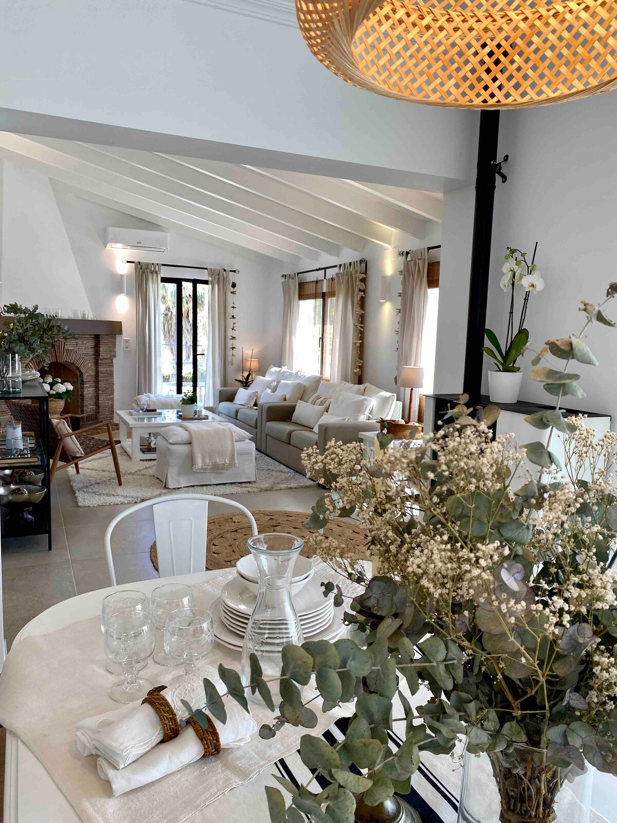Casa Rascló, элегантная вилла с видом на океан. Шесть гостей на основном этаже и отдельный люкс для двоих у бассейна. Средиземноморский дизайн, кровати 180x200, гостиная с камином и крытая терраса. Бассейн с солярием, обеденная зона на улице и барбекю. Два кондиционера на основном этаже, вентиляторы и еще один кондиционер в нижнем люксе. Уютное и стильное жилье на побережье.