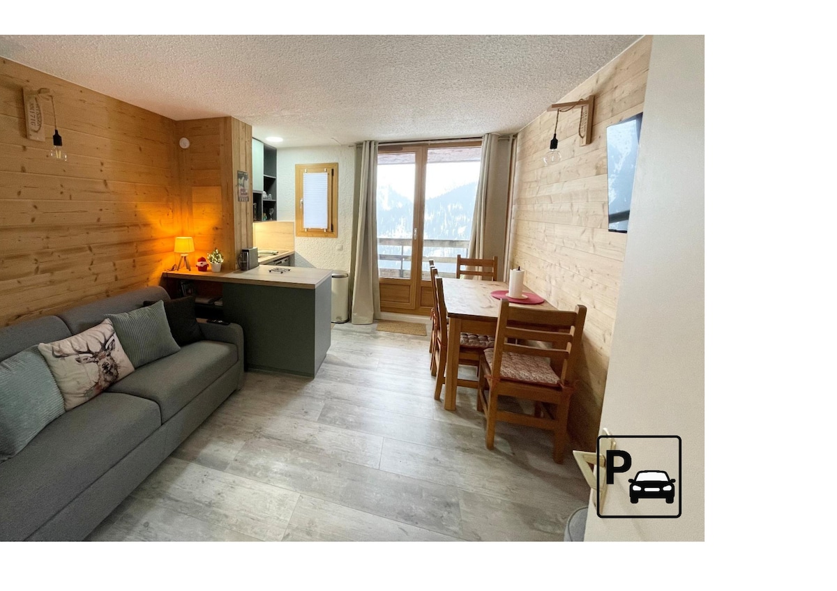 Studio skis aux pieds, parking privé couvert