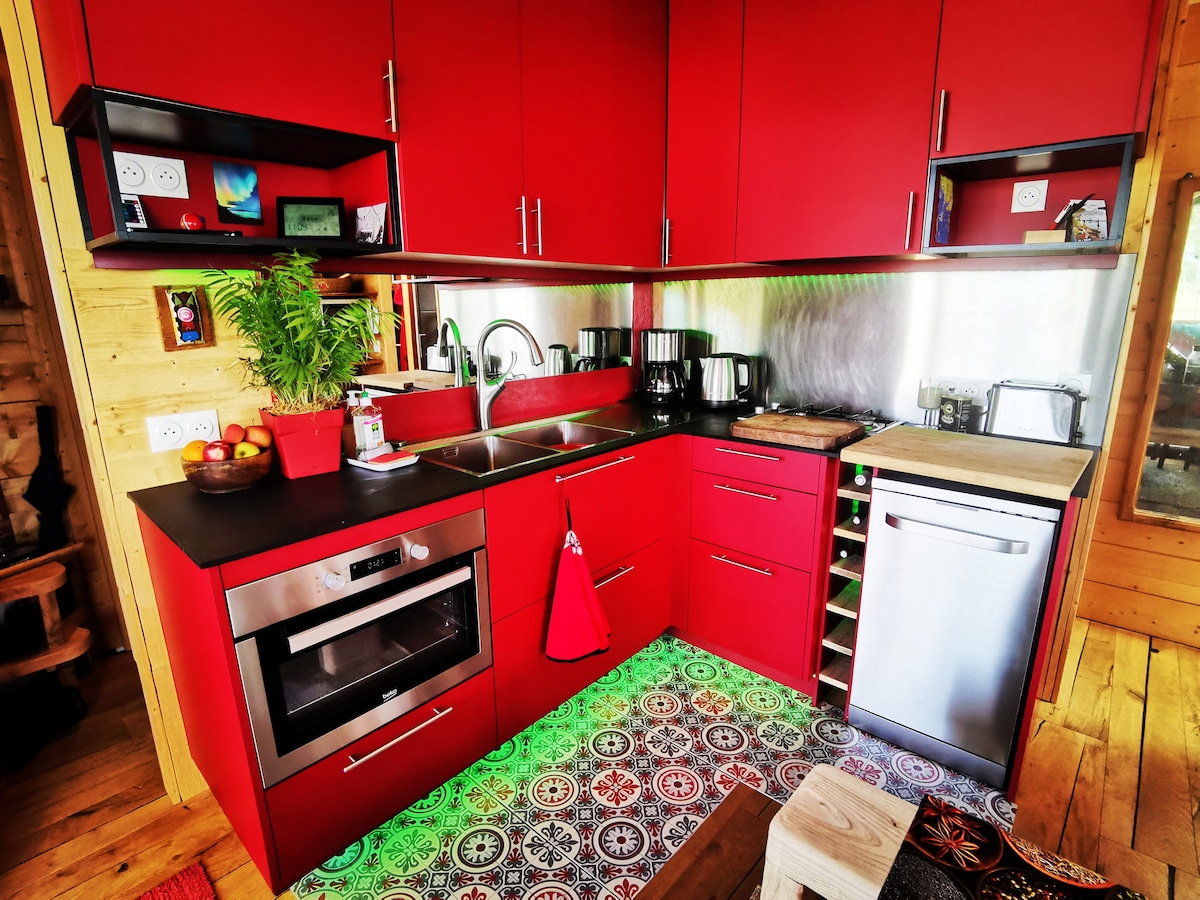 Очаровательная деревянная шаль рядом со всеми магазинами и примерно в 10 минутах езды от прекрасных пляжей побережья Лорьяна. Это жилье площадью 22 м2, расположенное в задней части нашего дома, состоит из главной комнаты со спальной зоной; двуспальной кровати 140x190 см, оборудованной кухни, а также ванной комнаты с душевой кабиной, раковиной и туалетом. Есть терраса, а также пергола