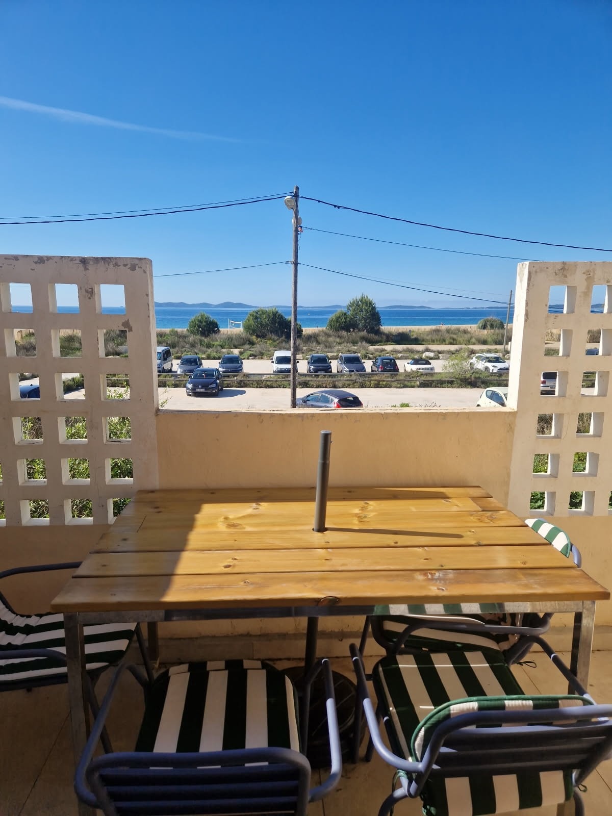 ОТДЕЛЬНЫЙ ВЫХОД НА ПЛЯЖ Исключительное расположение, квартира с кондиционером с видом на море и острова, и вид, от которого вы не устанете и каждый день предлагаете новые захватывающие дух картины. Очень светлая оборудованная кухня с эффектом внутреннего/внешнего пространства, идеально подходит для летних блюд, гостиная с высококачественным диваном-кроватью Rapido (160 см), спальня с двуспальной кроватью (140 см), большая полностью оборудованная терраса. Пляж Эгбель, рестораны в 2 минутах ходьбы.