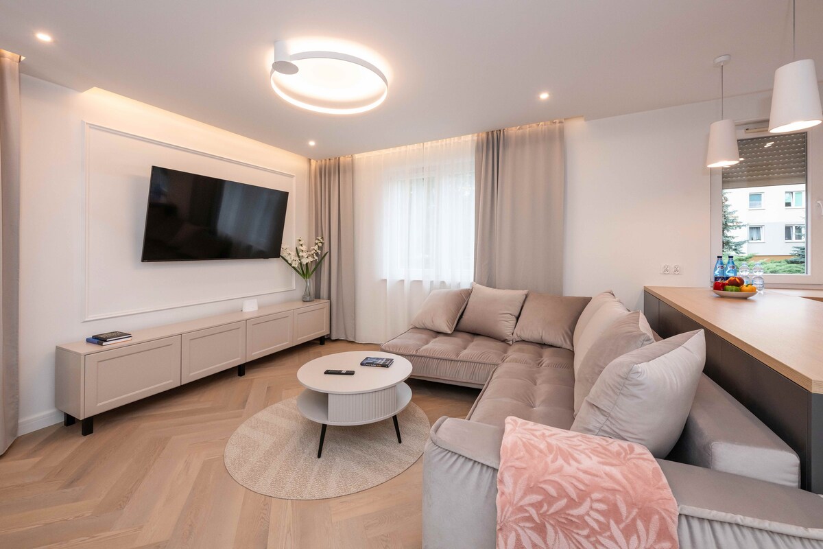 Приглашаем вас в современную, роскошно отделанную квартиру, расположенную в самом центре Торуни, всего в нескольких минутах ходьбы от очаровательного Старого города. Интерьер квартиры продуман до мелочей — элегантная мебель, высококачественные отделочные материалы и стильные аксессуары создают неповторимую атмосферу комфорта и престижа. В квартире могут разместиться 2 или 4 человека — есть спальня с удобной кроватью и диван-кровать в гостиной.