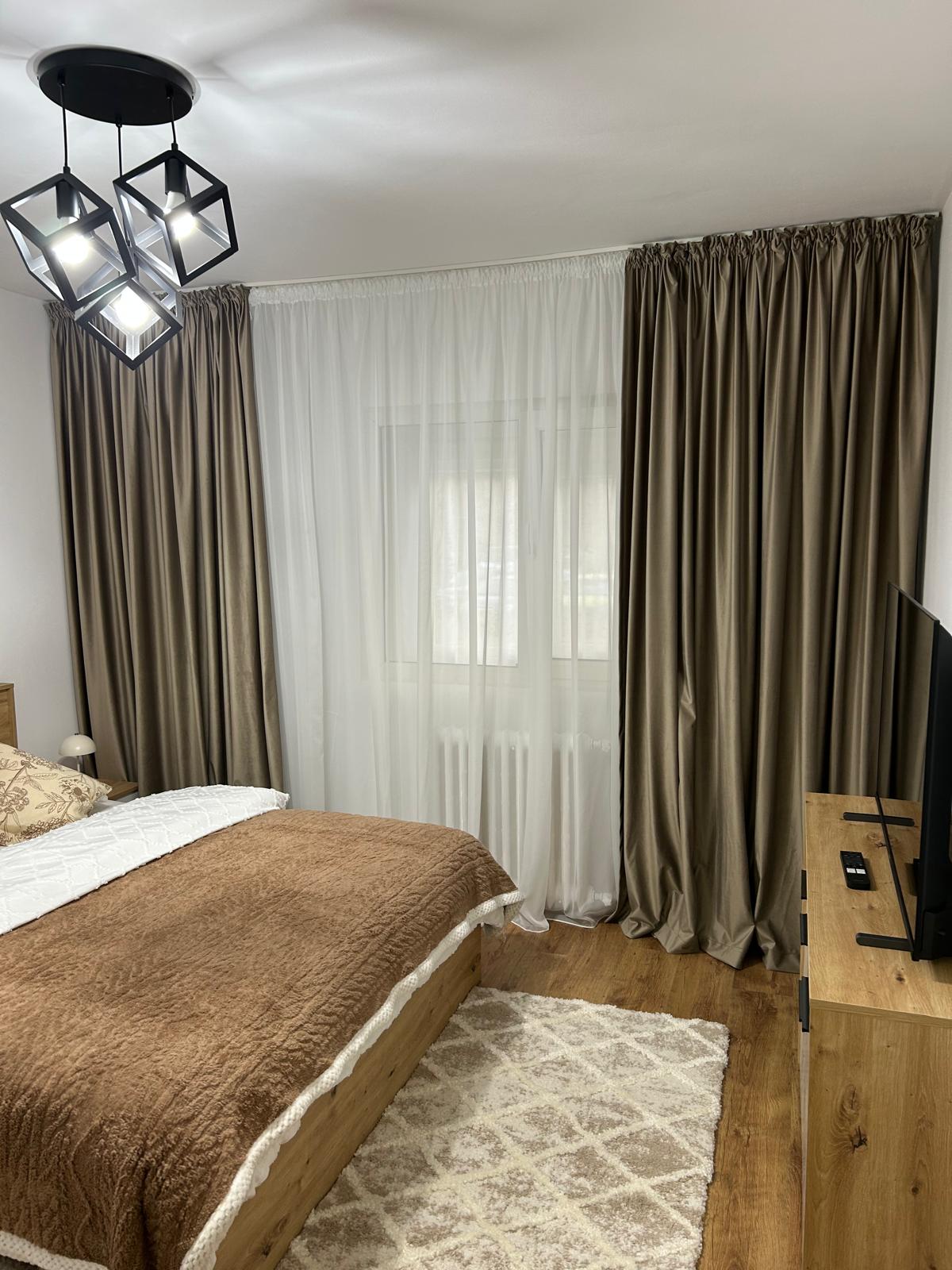 Современная и комфортабельная квартира, расположенная в центральном районе Крайовы на тихой улице, оборудованная новыми предметами, которые состоят из: просторной спальни с двуспальной кроватью, телевизором, письменным столом, комодом; гостиной с большим телевизором, раскладным углом; красиво оформленного балкона, новой ванной комнаты с ванной; полностью оборудованной кухни: плита, холодильник, стиральная машина, кофеварка, вытяжка, тарелки, чашки, столовые приборы, кухонные принадлежности и т. д.; коридора с вешалкой и туалетным столиком. Вся мебель и удобства новые.