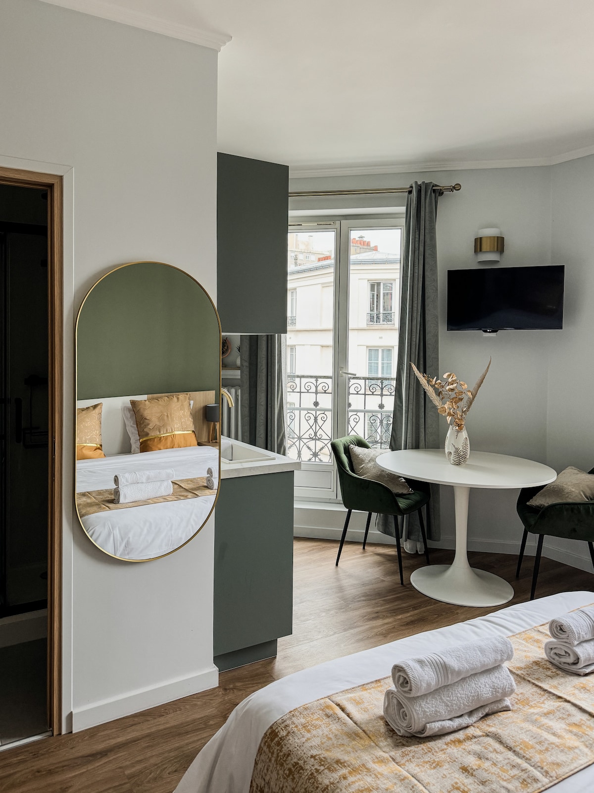 Насладитесь элегантностью и комфортом парижских апартаментов в стиле ар-деко всего в нескольких минутах ходьбы от метро, Елисейских полей и многих других достопримечательностей. Идеальное место для тех, кто любит дизайн и стиль и ищет более доступную цену в здании 1900-х годов. Основные характеристики * Удобная кровать размера Queen size * Полностью оборудованная кухня * 9 минут пешком Métro ligne (13) прямо на Елисейских полях и+ * Супермаркет через дорогу. Пекарня, аптека и + * Велосипедная станция 400м *SmartTv с Netflix и +