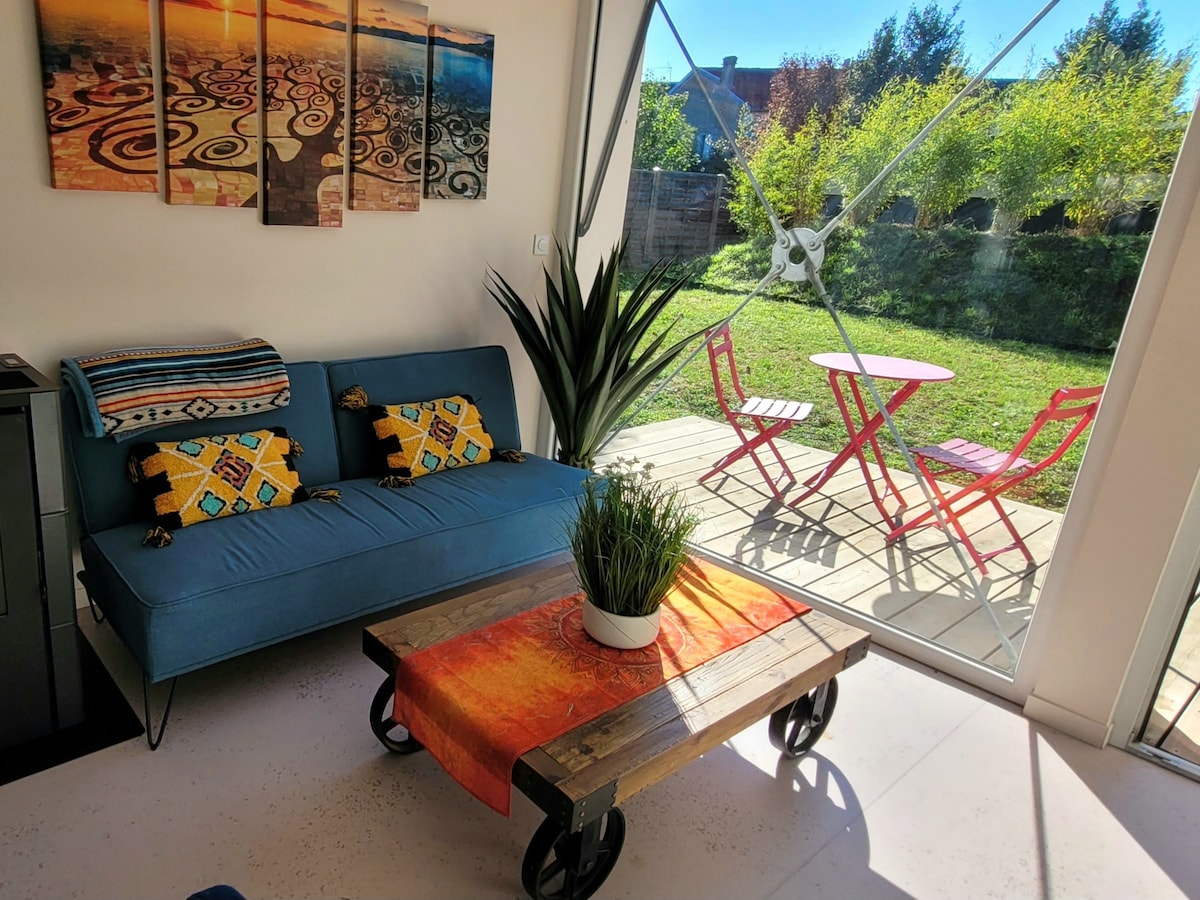 Полностью оборудованный мезонет площадью 30 кв. м с частным садом и доступом к бассейну в сезон. Безопасная парковка по запросу. 10 минут на машине от Буржа и 5 минут пешком: - PLAIMPIED Abbey - зеленая дорога, которая соединяет Бурж, вдоль канала дю Берри. Хорошая прогулка всем, даже нашим четвероногим друзьям. - детская игровая площадка, в красивом парке; - магазин, пекарня, мясная лавка и хороший ресторан. Детское оборудование. Скорость рабочего места/Wi-Fi.
