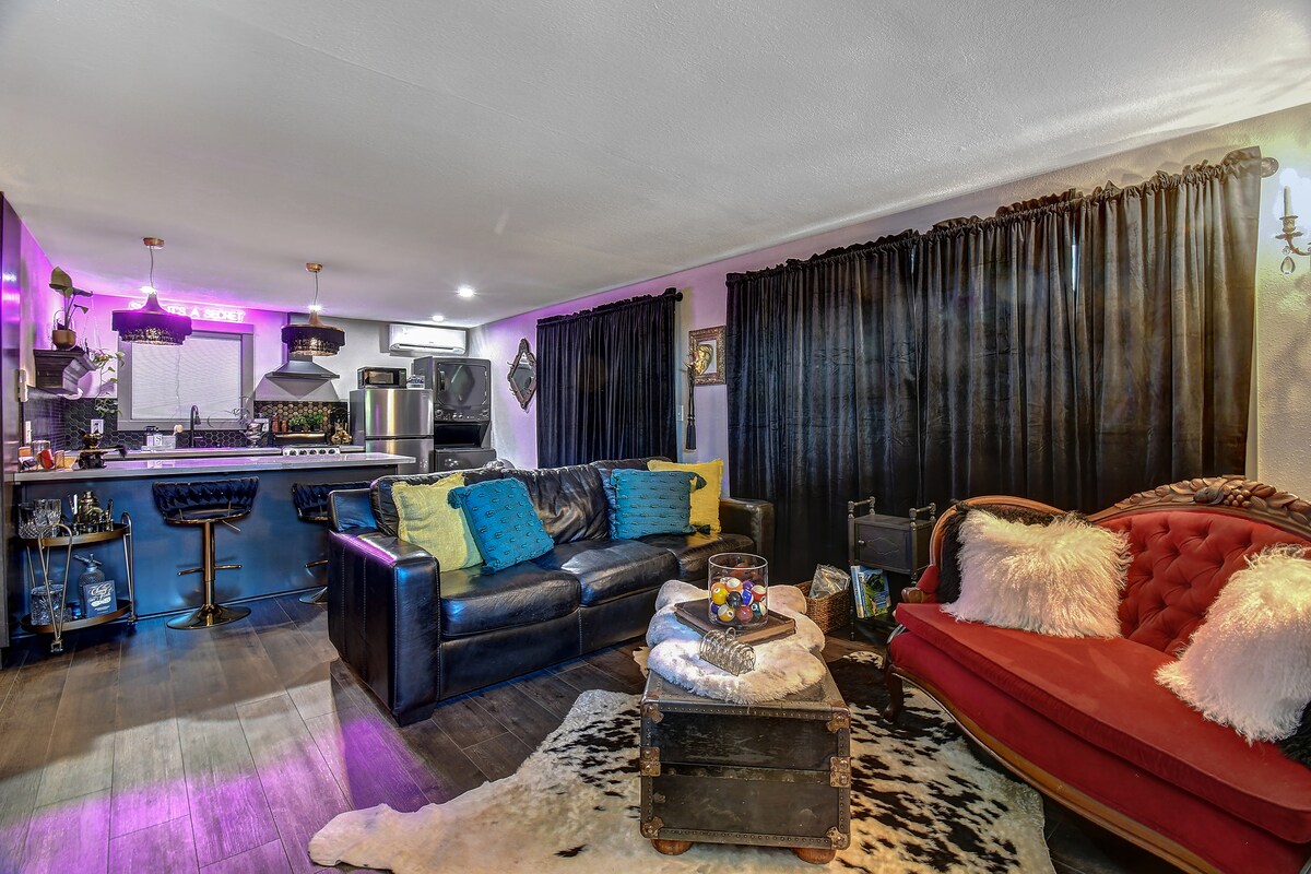 Предназначен для взрослых, чтобы соединить тело и разум. Жилье предлагает возможности для исследования, связи и отключения от внешнего мира. Бархат - звезда шоу. Роскошный, уникальный и великолепный дом. Насладитесь гидромассажной ванной, чашкой кофе или вина во внутреннем дворике или в комфорте уютной гостиной.