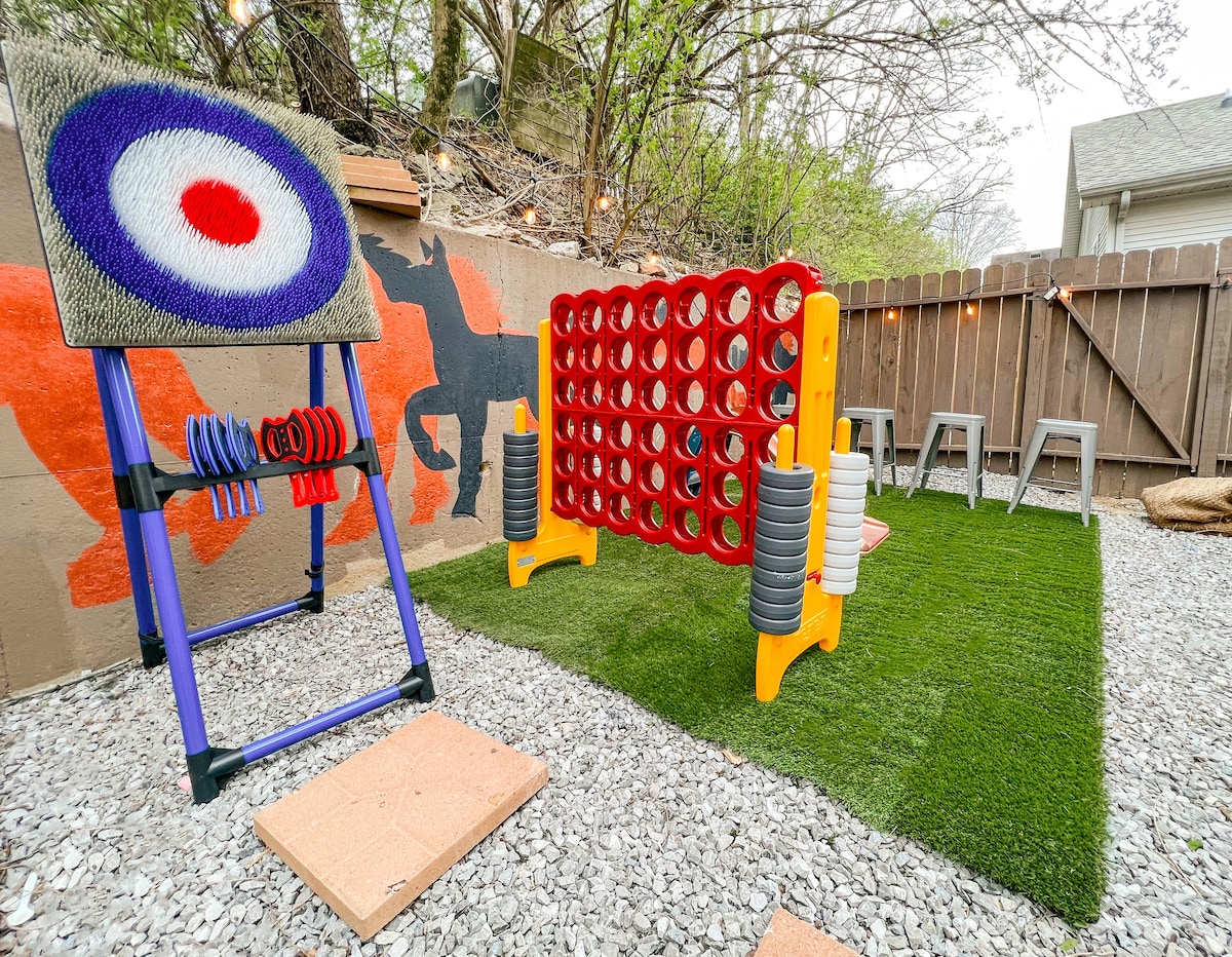 Удобное расположение в 5 милях от Великобритании, в 6 милях от Rupp Arena, в 18 минутах от Конного парка Кентукки и в нескольких минутах от магазинов и ресторанов! 2 главные спальни с кроватями размера King size и ванными комнатами Jack and Jill. Один хозяин на первом этаже и один наверху! 4 - 92-дюймовые телевизоры Smart TV с Roku. Детская игровая комната и множество настольных игр и игр на свежем воздухе = весело Придомовая территория уютная и наполнена весельем! Поле для гольфа Put-put, гигантская связь 4, бросание топора для детей и т. д., что делает этот район фаворитом! О, и ВАФЛИ!!