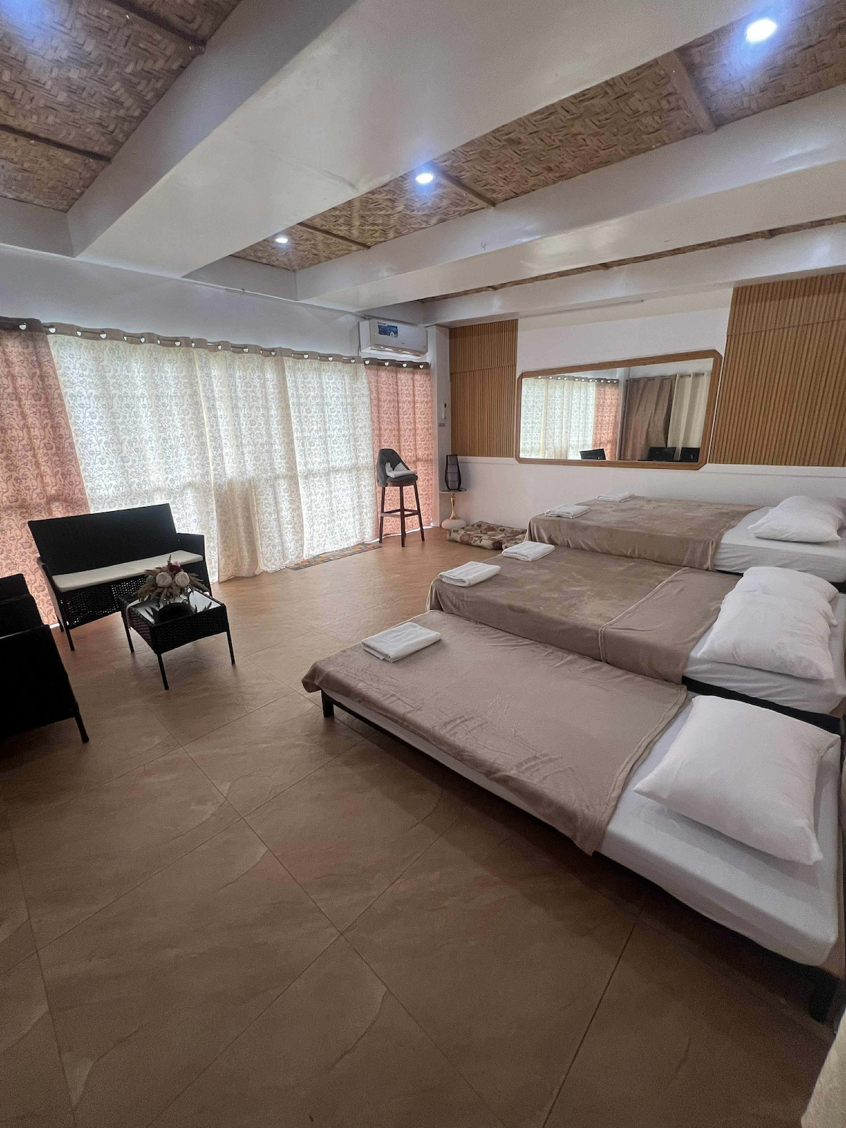 Ваш стильный дом вдали от дома — комфортабельный, удобный и продуманно спроектированный! ✈️ 5 минут езды до аэропорта 🛍️ 10 минут пешком до торгового центра, фаст-фуда и уютных кафе. 🏡 Теплый современный дизайн с деревянными акцентами, стильное освещение и открытая планировка 🛏️ Уютные спальни для спокойного отдыха. 8–10 спальных мест. Идеально для семей, друзей или деловых поездок. 🛋️ Привлекательная гостиная для развлечений 🍳 Кухня с плитой, рисоваркой, тостером и холодильником. 🛜 Интернет: Converge 50–150 Мбит/с