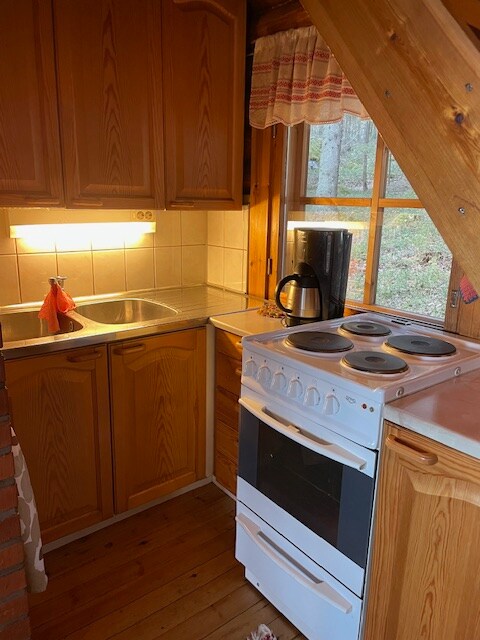 В коттедже на берегу парной женщины можно провести отпуск с уникальным озерным ландшафтом. В сауне на дровах мягкий пар и вид на озеро. Полы с подогревом, каминное отопление зимой. Приготовление пищи в аэрофритюрнице, в микроволновой печи или на патио с помощью газового гриля. Питьевую воду можно получить непосредственно из кухонного крана. В распоряжении гостей весь домик, в котором есть спальные места для двух человек, сауна, туалет и небольшая кухня. Тепловой насос с источником воздуха обеспечивает правильную температуру в помещении. 13 км до центра. 8 км до продуктовых магазинов.