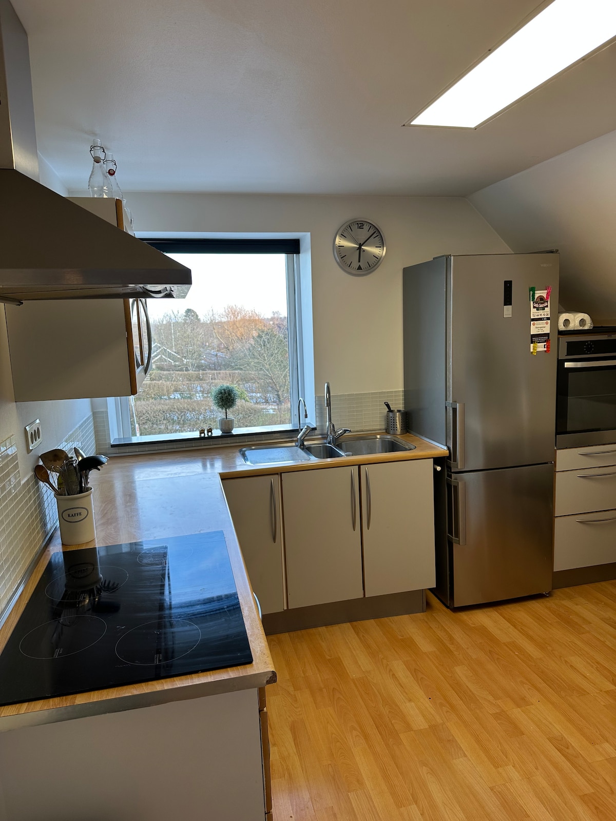 Забудьте о заботах в этом просторном и спокойном доме с прекрасным видом. 3 спальни со smart-телевизорами. 2-х спальная кровать 180 см Двуспальная кровать 140 см Две односпальные кровати 90 см. Большая кухня с обеденной зоной на 4 человек и хорошим оборудованием Квартира находится на первом этаже нашего дома, есть наружная лестница, вы арендуете весь дом. Кофе, чай и сахар предоставляются. Постельное белье, полотенца, полотенца для посуды — это то, что вам может понадобиться во время проживания. Добро пожаловать в Фарум, в 21 км от Копенгагена.