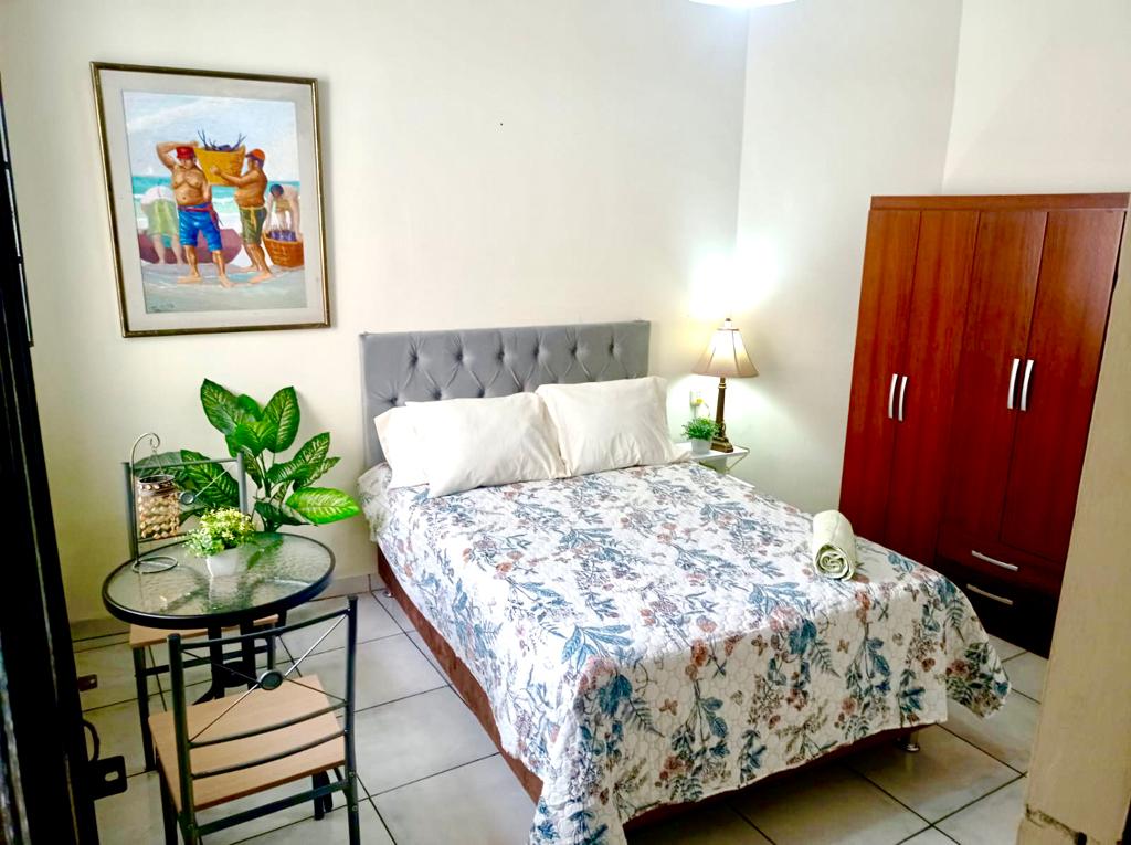 Уютная студия с мини-кухней, спальней с шкафом, обеденной зоной, письменным столом (шириной 1,10 м) и собственной ванной комнатой. Это пространство полностью частное во время вашего пребывания и расположено на четвертом этаже, где вы будете наслаждаться прекрасными закатами. Идеально подходит для тех, кто проводит время на улице, осматривая достопримечательности или работая, и нуждается в комфортном месте, куда можно вернуться. Отличное расположение, недалеко от супермаркетов, банков и магазинов, но вдали от суеты. Район тихий и 100% жилой.