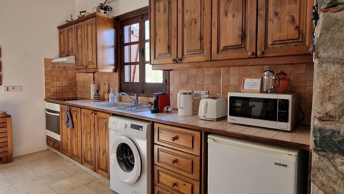 Наш прекрасный дом расположен в великолепном районе, покрытом деревьями, и предлагает идеальное сочетание красоты и покоя. Расслабьтесь и насладитесь видом, дышите свежим воздухом! Всего в двух минутах ходьбы от пекарни, в нескольких минутах ходьбы от продуктового магазина и традиционной таверны-ресторана. Рядом с церквями и винодельней деревни. В нескольких шагах от горных троп. Он также сочетает в себе доступ к горам Троодос (12 км), Лимассолу (40 км) и многим деревням.