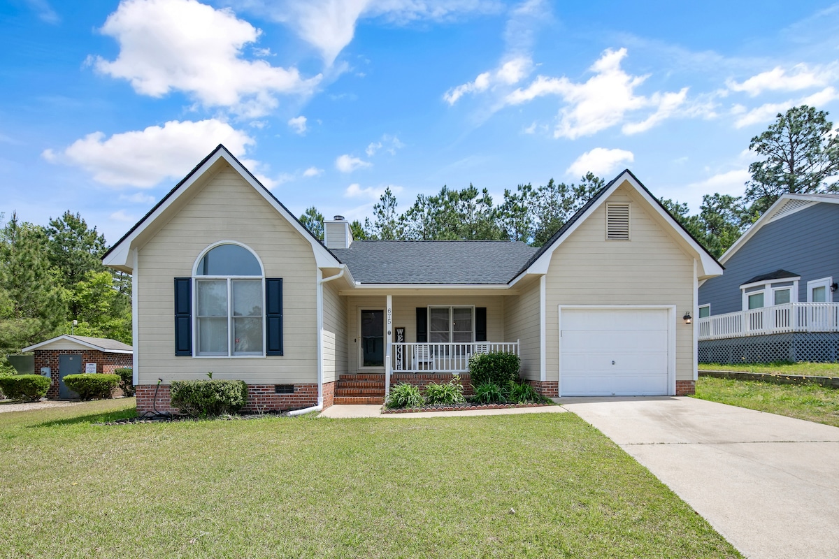The Bull's Retreat, a newly renovated space with 2 King Beds and 2 single beds, ideal for travelers or getaways. It's centrally located in a peaceful neighborhood near Ft. Bragg, Fayetteville, Sanford & Southern Pines. It's great for reconnecting with familiy and friends. The open-concept living space includes a fully equipped kitchen, breakfast bar, dining area, 3 bedrooms, 2 bathrooms, and open living room. Note: Owners reserve the garage for personal use only; it isn't accessable to guests.