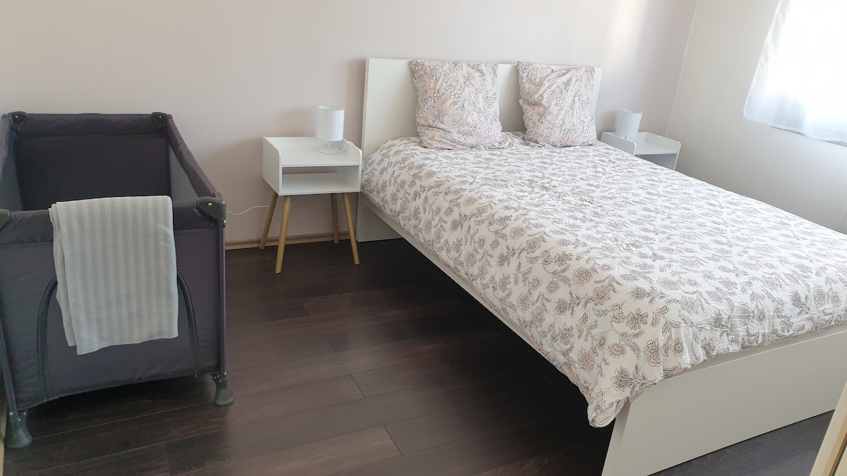 Приезжайте и наслаждайтесь этим тихим коконом площадью 40 м2, расположенным на 2-м этаже, с лифтом и террасой. В стоимость проживания включен гараж. Рядом со всеми удобствами, такими как пекарня, продуктовый магазин, ресторан, общественный транспорт, супермаркет. Идеально подходит для романтических выходных, с друзьями или для работы! Я предоставляю самое необходимое на первые несколько дней: кофе, туалетную бумагу, мусорный мешок и т. д.
