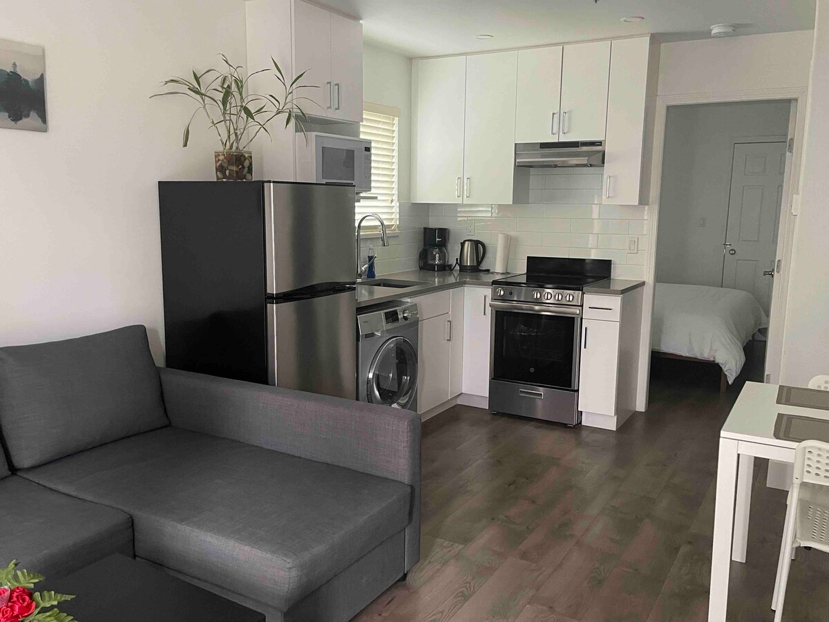 Современный комфорт и уютное очарование ждут вас в этом гостевом доме-лофте. Благодаря уютному газовому камину в домике и двуспальной кровати размера King size это идеальное место для отдыха после дня знакомства! В этом автономном доме есть полностью оборудованная кухня, частное патио и современная ванная комната с ванной. Расположенный недалеко от оживленной коммерческой дороги, вы в нескольких шагах от лучших ресторанов, баров и бутиков Ванкувера. Прогулка до Skytrain займет всего 7 минут. Там, где современный стиль встречается с уютным теплом, с нетерпением ждем вас!