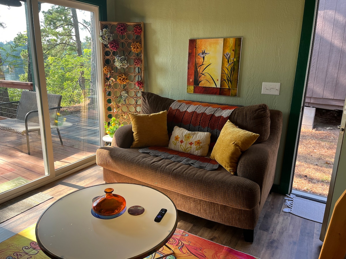 Добро пожаловать на наш потрясающий Airbnb с панорамным видом на долину Уачита и озеро Гамильтон. В этом современном уединенном месте с открытой планировкой есть собственный балкон для восхода солнца и наблюдения за звездами. Наслаждайтесь продуманным дизайном, полностью оборудованной кухней, совершенно новой гидромассажной ванной и исключительными видами. Airbnb находится на частном участке площадью более 1 акра, расположенном на природе. Походные тропы и водные развлечения поблизости. Отпуск вашей мечты начинается здесь!