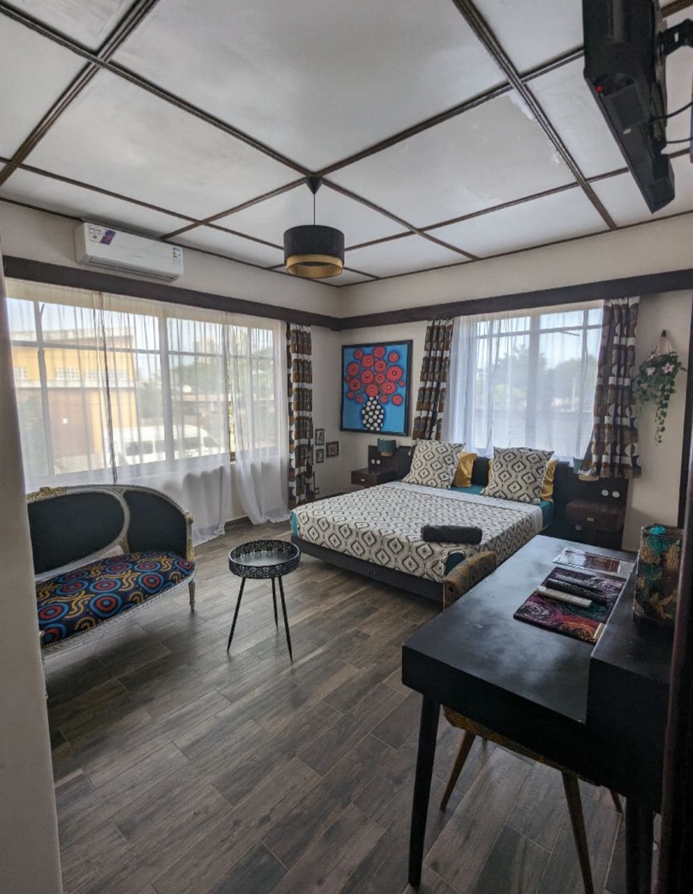 Simplifiez-vous la vie dans ce logement paisible que 2 amis franco-beninois ont créé afin de partager leur passion de recevoir dans un cadre mélangeant leur double culture. Venez découvrir cette maison atypique ainsi que ses chambres uniques décorées par des artistes et désigners beninois. La maison est a 5min de la plage, des commerces et de l'aéroport.