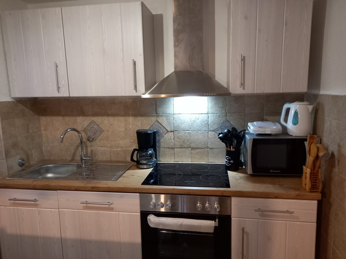 Этот дом расположен за пределами центра города, вдали от соседей, шума и повседневной суеты. Здесь есть большой огороженный сад, окруженный природой, так что вы можете наслаждаться отпуском и уединением. Во дворике есть длинный стол ручной работы, скамейки и барбекю. На маленькой кухне есть электрическая плита с духовкой, посудомоечная машина, морозильная камера и холодильник. Есть обеденная зона, гостиная и ванная комната, и все это находится на первом этаже (50 м²). 3 спальни расположены на последнем этаже: одна площадью 20 кв. м, одна площадью 12 кв. м и третья небольшая комната площадью 7 кв. м