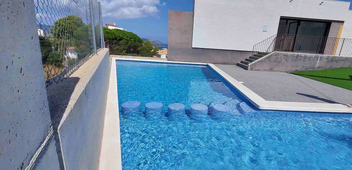 Стиль Ибицы рядом с пляжем Грифеу, частичный вид на океан и прекрасный вид на горы, с фантастическими бухтами в пяти минутах ходьбы от дома, в привилегированной среде, рядом с несравненным Ками-де-Ронда, который граничит с Коста-Бравой, в уникальном ландшафте, где Пиренеи входят в море, и вы можете практиковать все виды водных видов спорта в его кристально чистых водах, в тихом развитии Грифеу, в 1 км от Порт-де-Льянса.