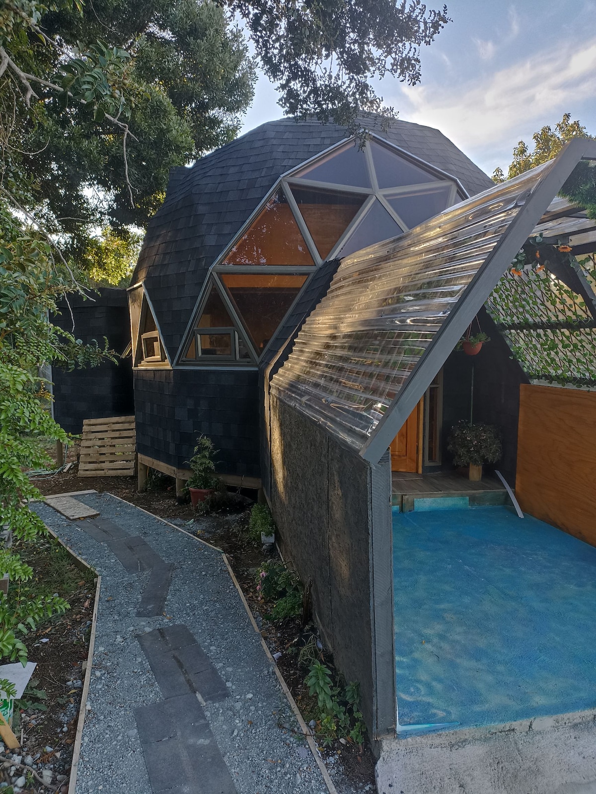 Viva una experiencia inolvidable en CasaDomoPequeña — mucho más que un alojamiento, una conexión auténtica con la naturaleza. Descubra una cúpula exclusiva: una casa entera con dormitorio y cocina en un mismo espacio, con WC, terraza y estacionamiento privado. Despertar con el canto de las aves, rodeado de la calma del bosque, será solo el inicio de un momento que recordará para siempre. A 12 min en coche de Puerto Varas, el lugar ideal para desconectar y reconectar en armonía con la naturaleza.
