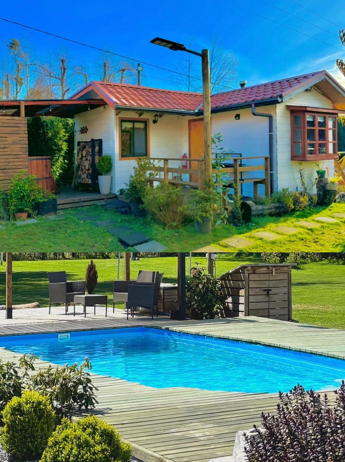 🔸 Encuéntranos en ig📸: elalbavillarrica 🔸Tinaja valor adicional ✅ 🔸 Revisa nuestras recomendaciones en Google Maps como “Cabañas el Alba” en Villarrica.📍 🔸 Espacio tranquilo, cálido y acogedor con combustión lenta para calefaccionar, tinaja privada, piscina, amplias áreas verdes, zona de juegos (mesa de pin pon, taca taca) cancha de fútbol y voleibol, un lugar excepcional para encontrar paz y descanso en pareja o junto a la familia.