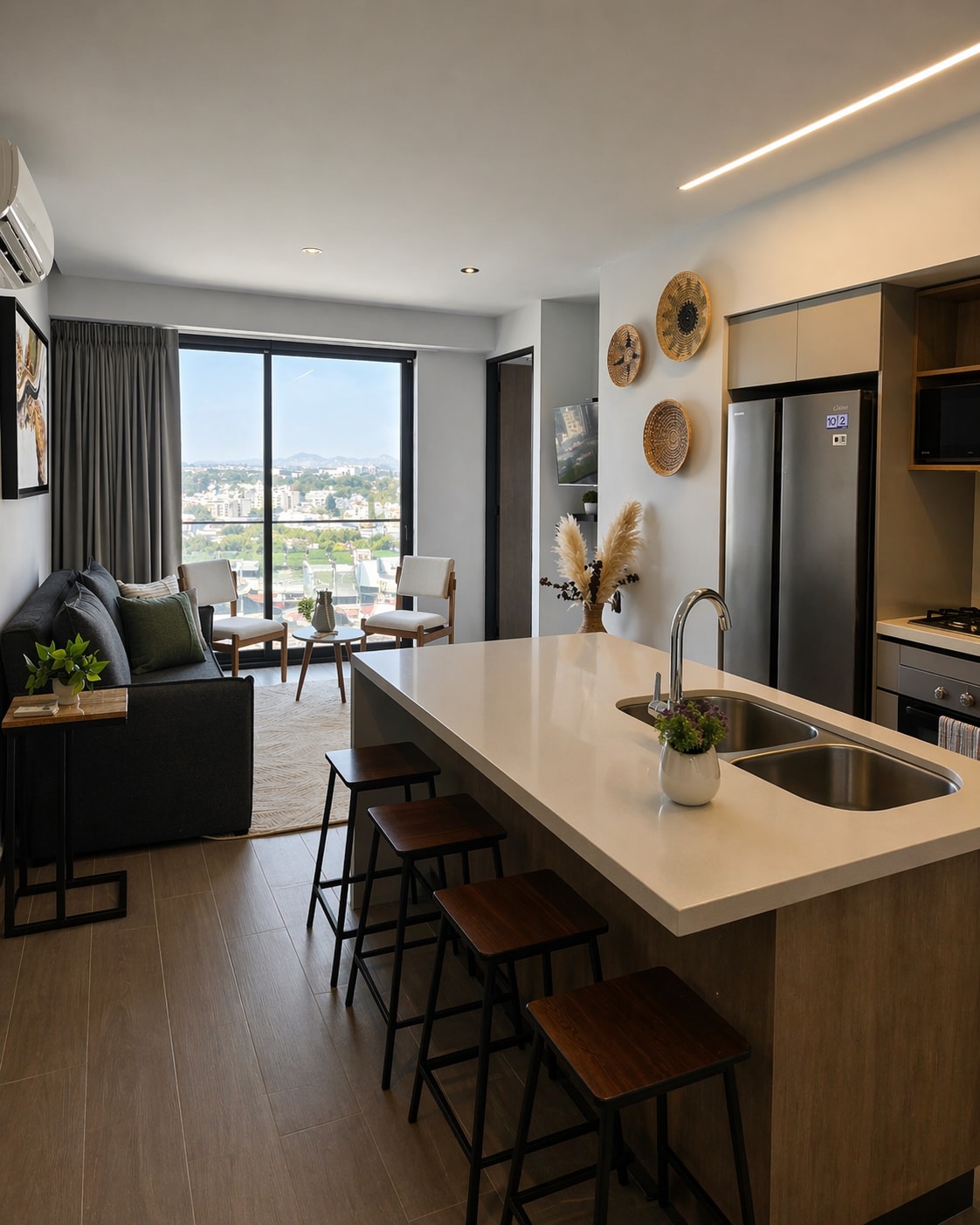 Perched on a high-floor corner, this luxurious 2,500 sq ft (235 m²) apartment in Zapopan’s exclusive Valle Real neighborhood, offering unparalleled panoramic views. This custom-furnished sanctuary is designed for the high-end traveler, featuring hotel-level amenities like a pool and 24/7 security. With 600 Mbps Wi-Fi and a prime location near the Andares Mall and the Oracle Campus, it serves as the ultimate corporate home base or affluent family retreat in the Guadalajara Metro Area. ⸻