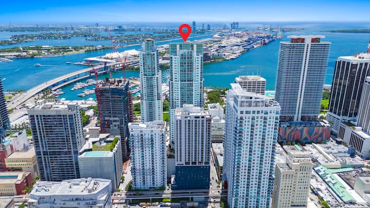 The Financial center of Miami with glimmering skyscrapers, shops, international restaurants and more. Located across the bay south of the Miami River in Downtown Miami.