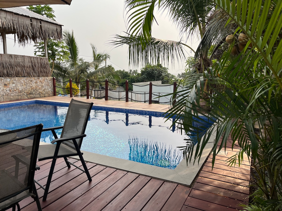 Голубая вилла расположена всего в 10 минутах от центра города и идеально подходит для тех, кто хочет отдохнуть, отдохнуть на выходные или провести несколько дней в приморском городе Криби. Идеально подходит для семей, которые хотят отдохнуть от стресса мегаполисов, для друзей, которые хотят хорошо провести время в море, а также для иностранцев, которые откроют для себя все очарование Камеруна и южного региона.