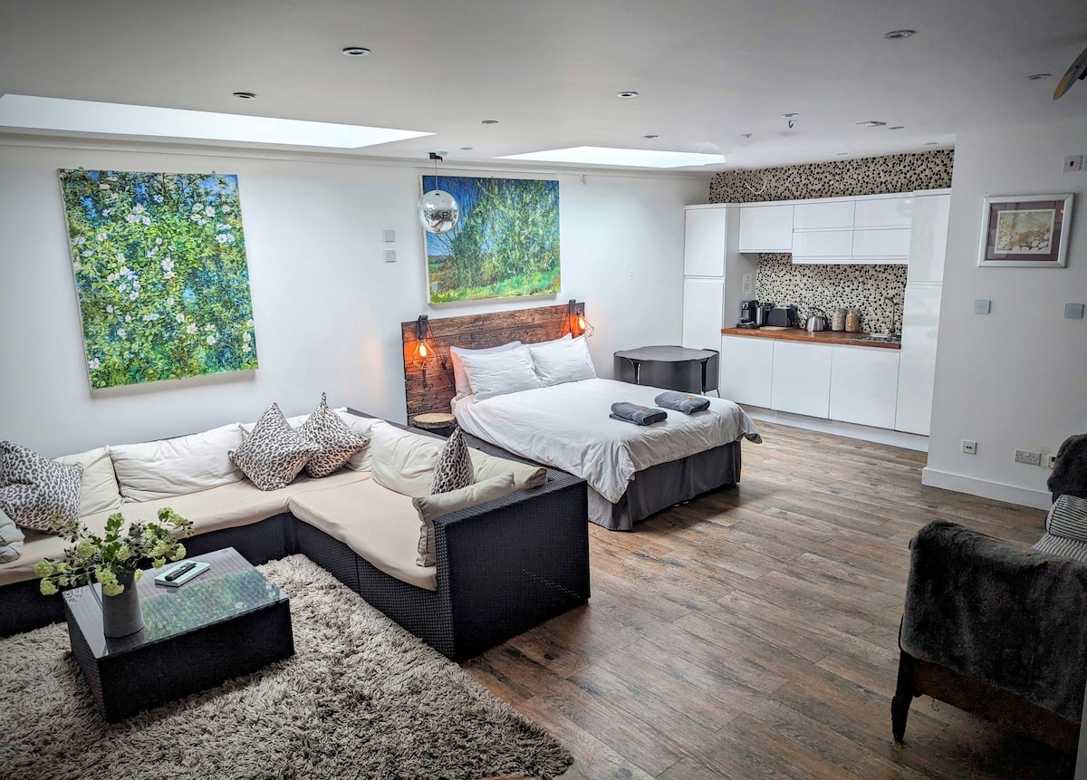 Красивая автономная садовая студия, расположенная в центре исторической деревни Хайгейт. Студия площадью 320 кв. футов оборудована двуспальной кроватью размера King size, мини-кухней, ванной комнатой с просторным душем, 55-дюймовым телевизором высокой четкости, BBC iPlayer, Amazon и Netflix. На улице есть получастное патио с сиденьями. В деревне есть десять пабов/ресторанов в нескольких минутах ходьбы, а также красивое обширное кладбище Хэмпстед-Хит и Хайгейтское кладбище. Неподалеку есть отличное автобусное и метроное транспортное сообщение.