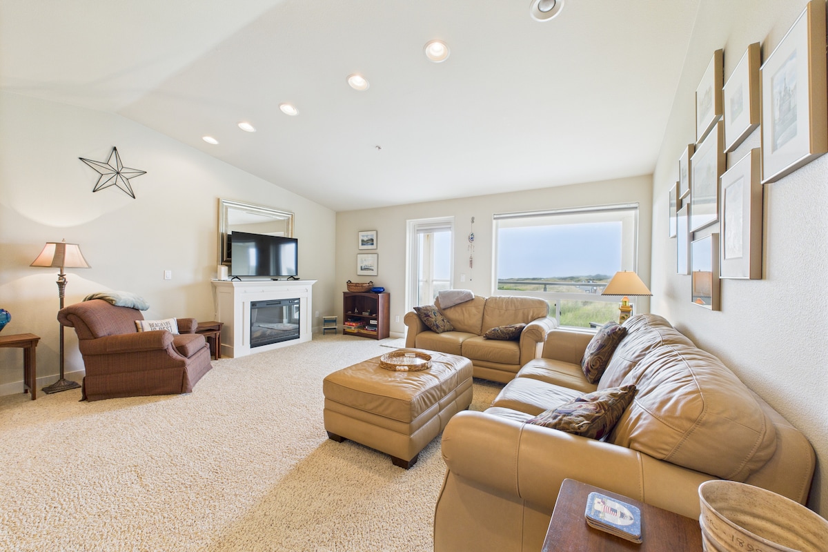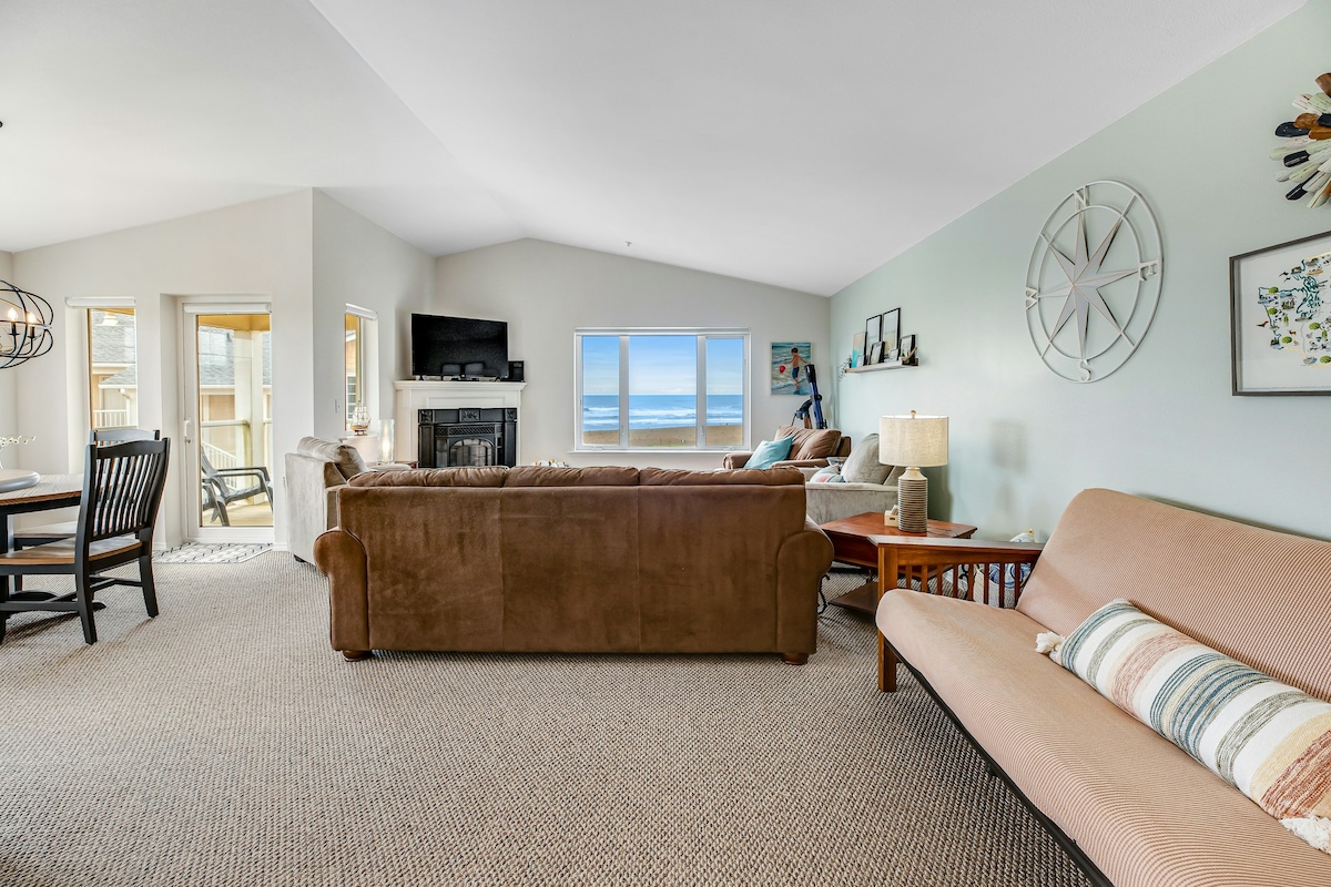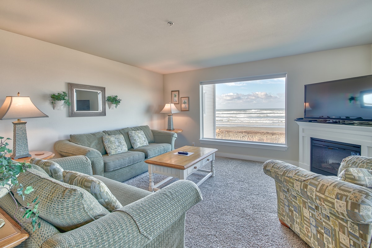 Relax with your friends or family at this 2 bedroom, 2 bathroom quiet condo in Westport, WA with ocean view. It sleeps 6 with 5 total beds (1 king, 2 sets of twin bunk beds). There is also a Pack 'n Play if needed. Very comfortable couch in front of fireplace with view of crashing waves. The entrance to the beach is at the Westport Light State Park, only a 1/4 mile walk/drive away. It is also within walking distance of the Grays Harbor Lighthouse and less than 10 minutes to the marina.