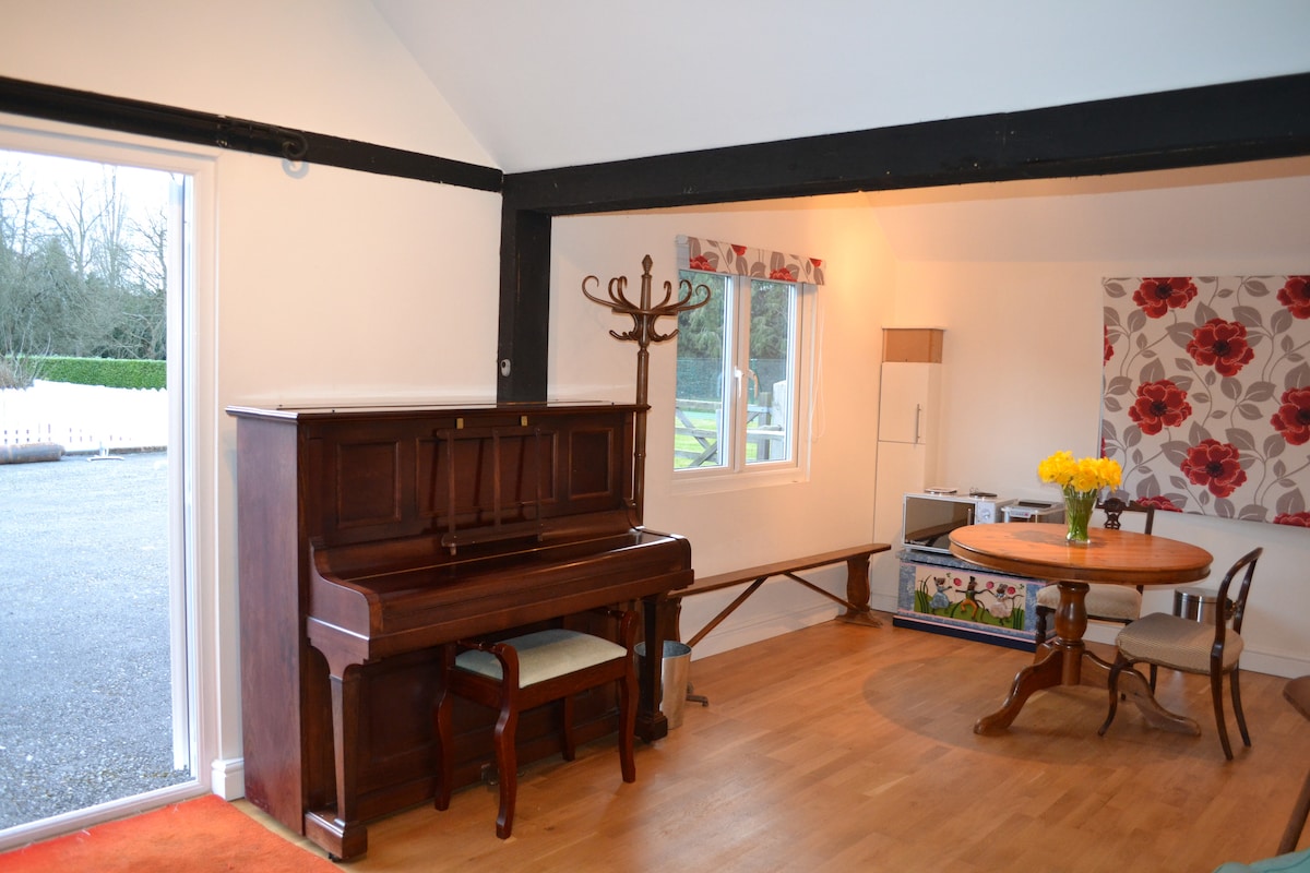 В сельской местности, но в 5 минутах от станции Уокинг (25-30 минут до Ватерлоо) и очень удобно для Хитроу и Гатвика и нескольких основных автомагистралей, включая M25/M3/M4/M2. В отдельном переоборудованном блоке есть 1 спальня с кроватью размера Queen size, душевая комната/туалет, кухня с варочной панелью, холодильник/морозильная камера, микроволновая печь и другие кухонные принадлежности. В гостиной есть Sky TV (все спортивные и киноканалы) и пианино. Охраняемая парковка на бездорожье рядом с конюшней. Приветствуются дрессированные собаки.